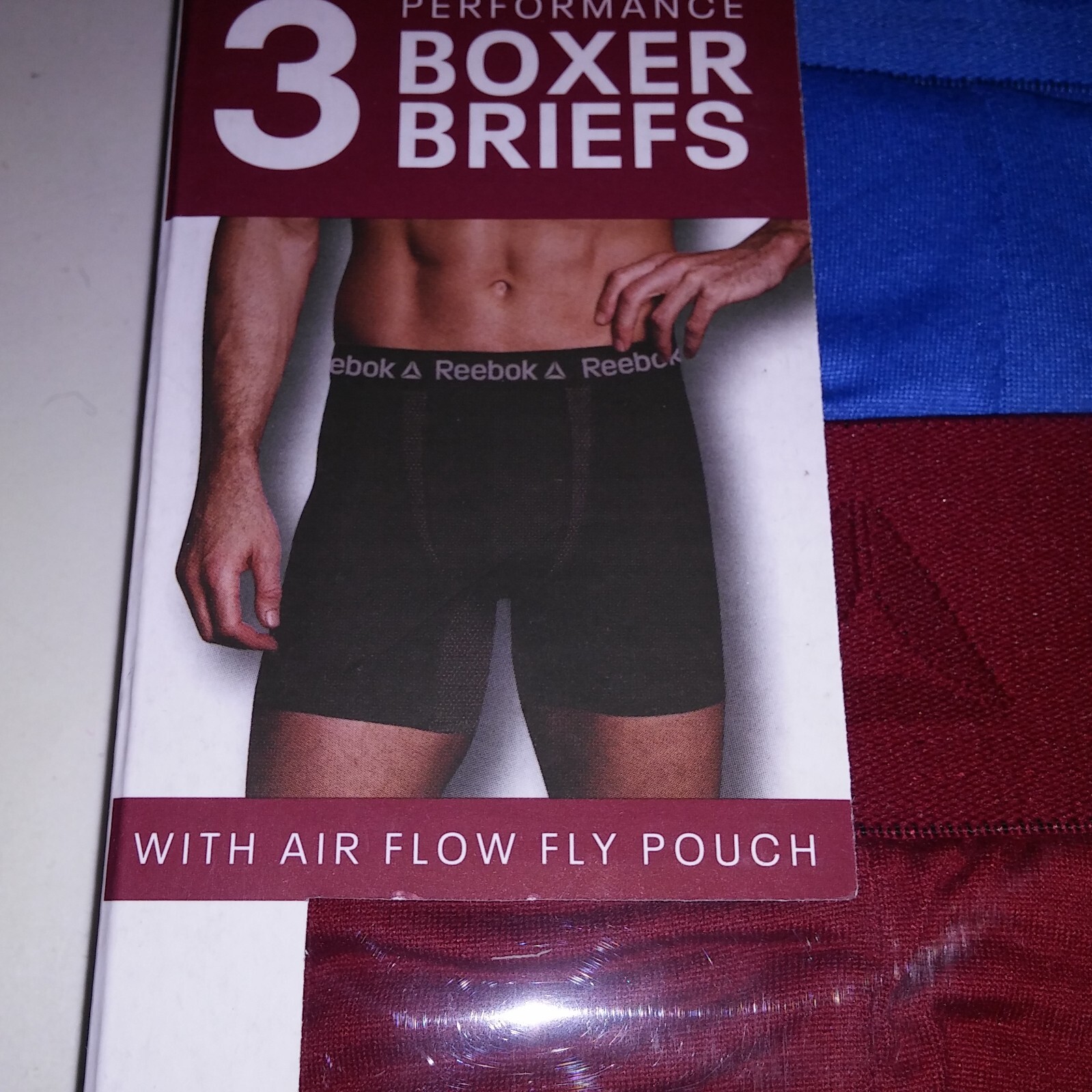 как выглядит Reebok Underwear Mens Boxer Briefs 3 Pack Solids Black Red Blue Air Flow Fly Pou фото
