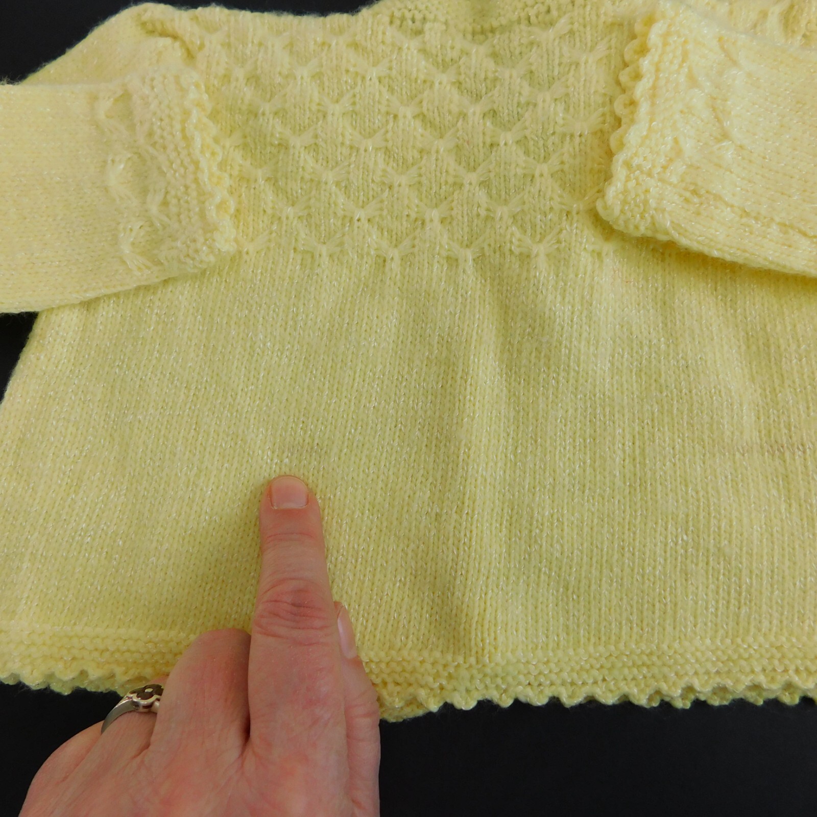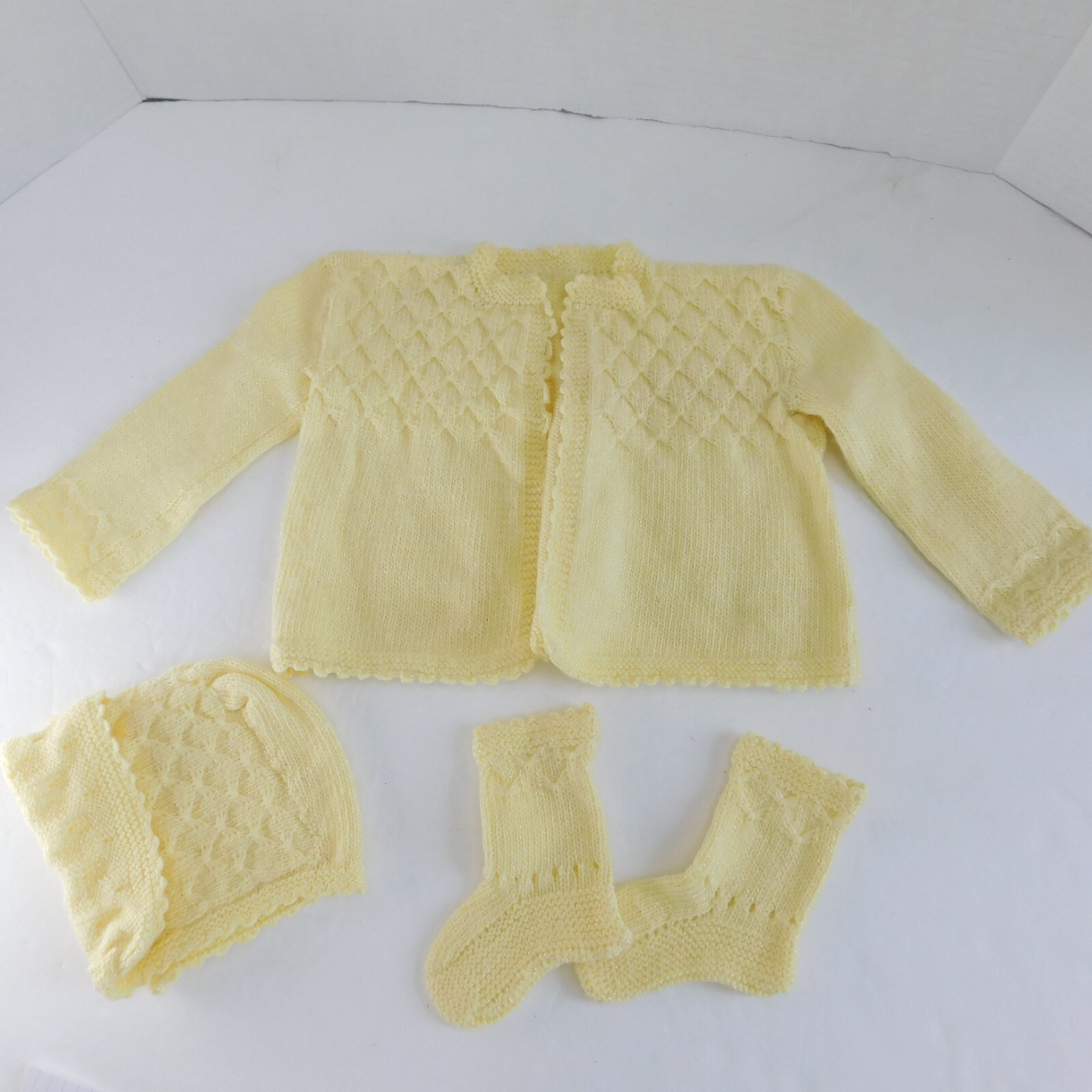 Vintage Sweater 3 Piece Set Baby Knit Yellow Acrylic Handmade Booties Cardi Hat