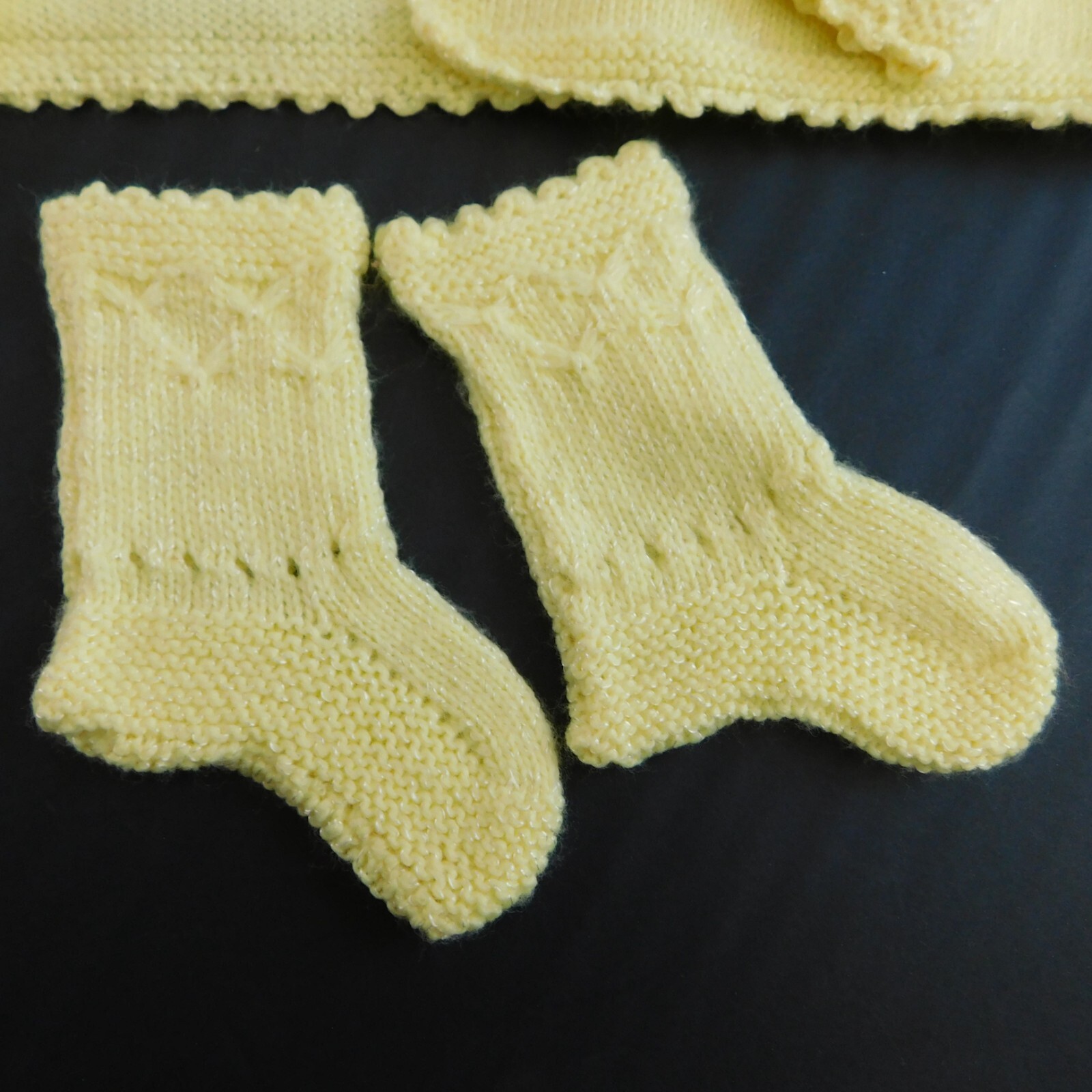 как выглядит Vintage Sweater 3 Piece Set Baby Knit Yellow Acrylic Handmade Booties Cardi Hat фото