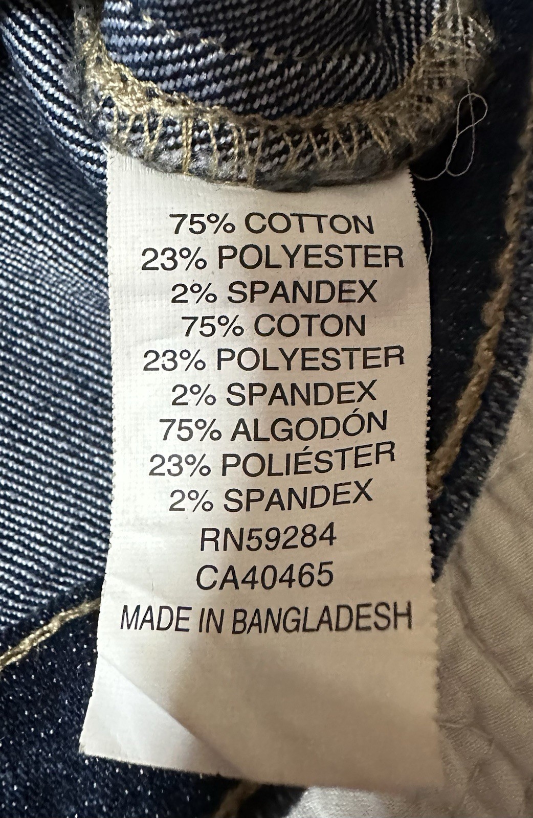 Lining Material: 75% Cotton, 29% Polyester, 2% Spandex