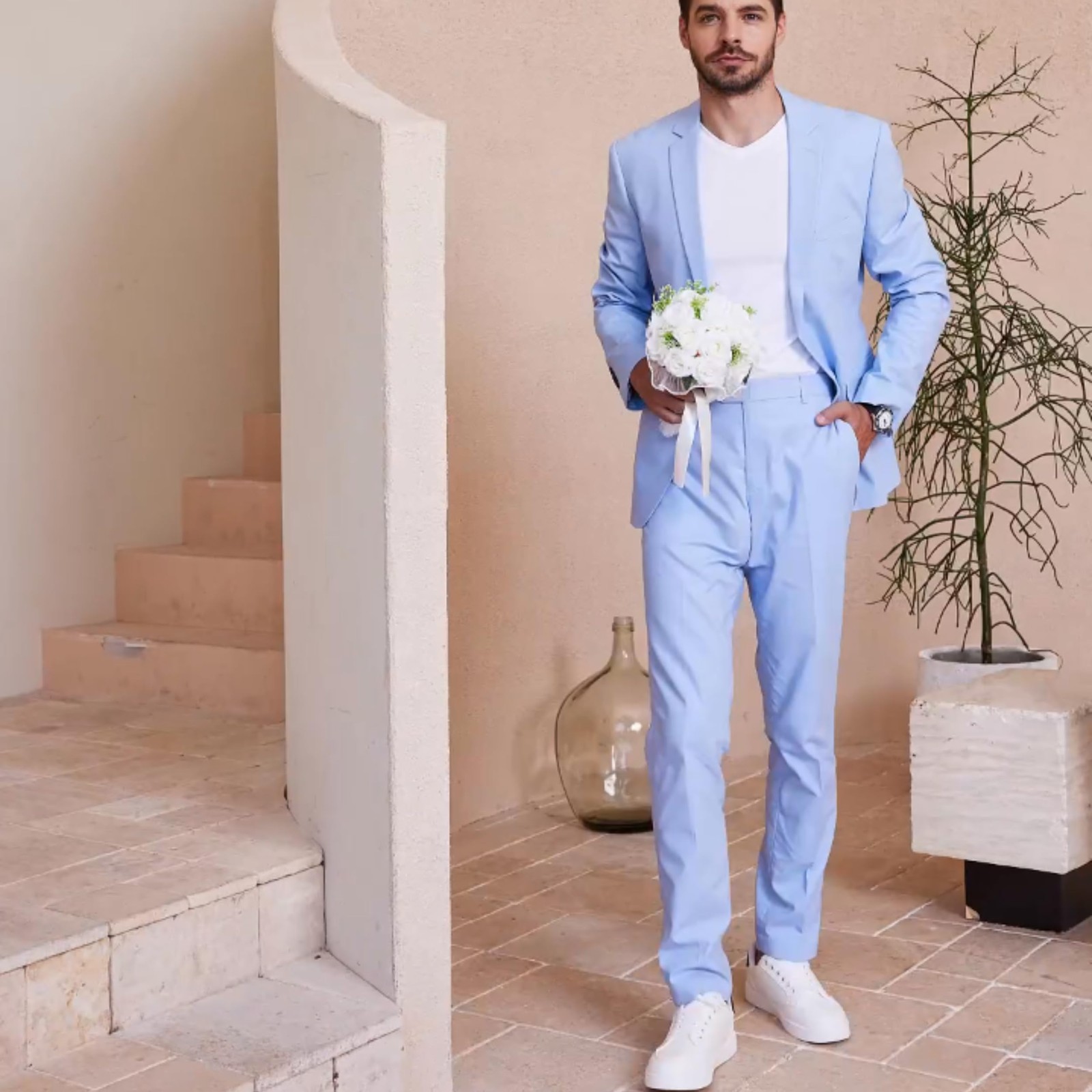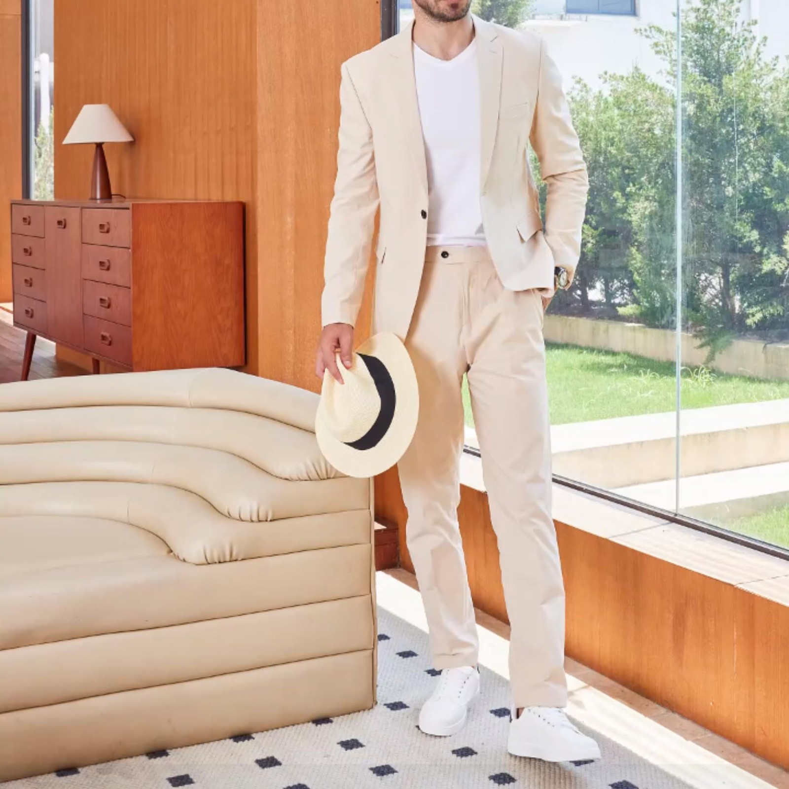Dbutiy Men's Linen Suits 2-Piece Set - Summer Beach Wedding Groom Suit for Men