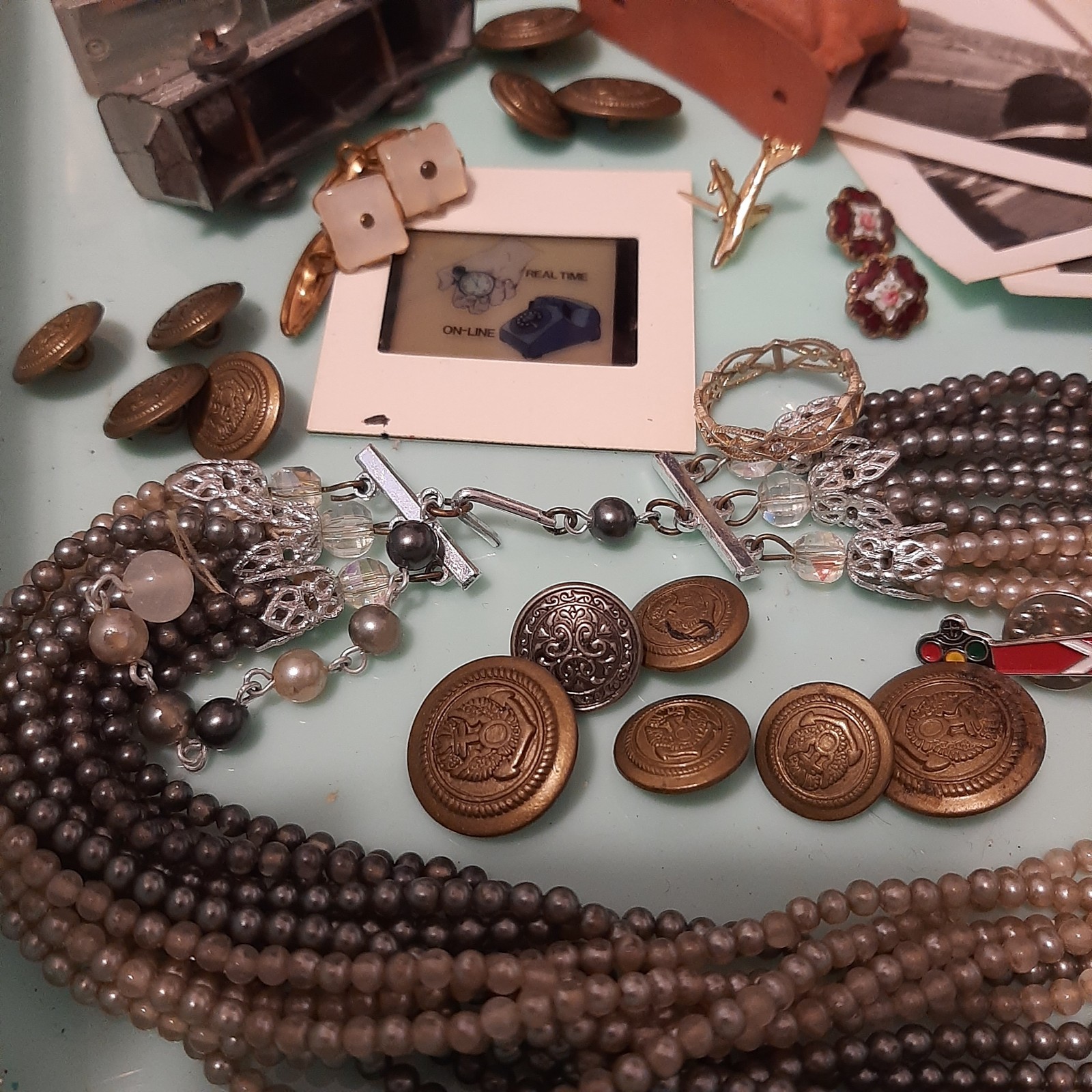 как выглядит Small JUNK DRAWER LOT A: Smalls Jewelry Trinkets Ephemera Cassette Tapes Buttons фото