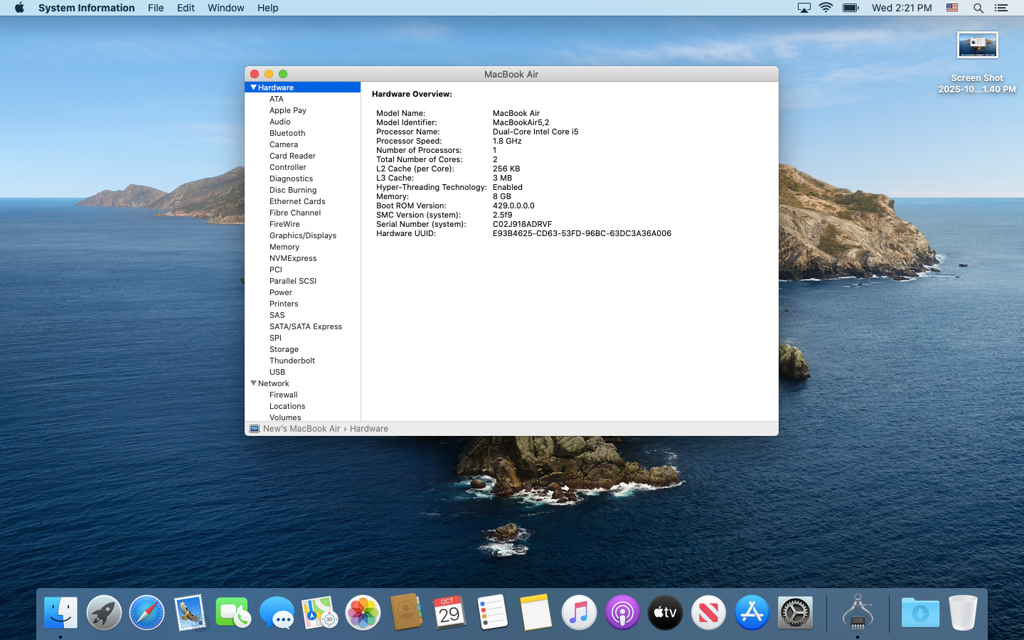 Операционная система: Mac OS 10.15, Catalina