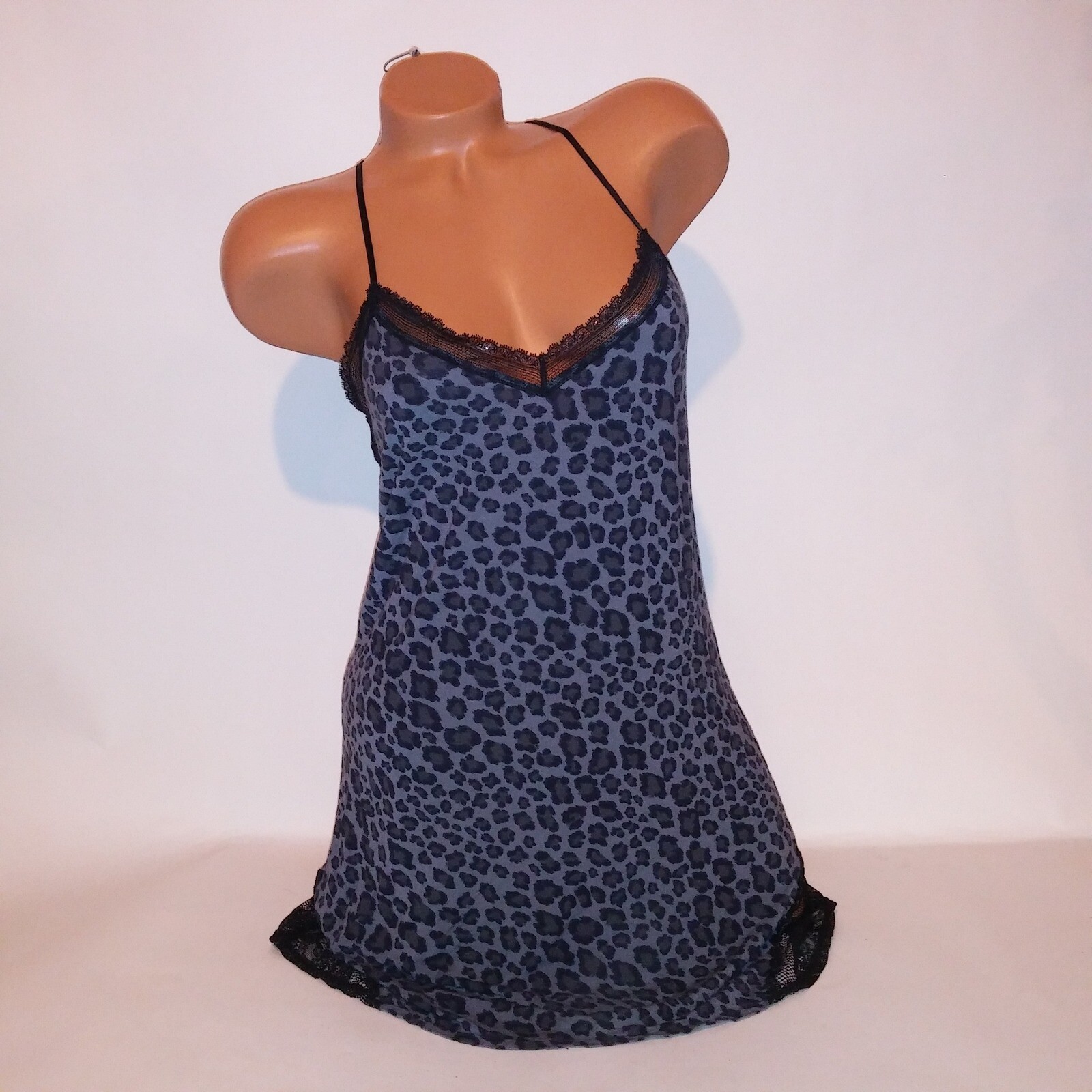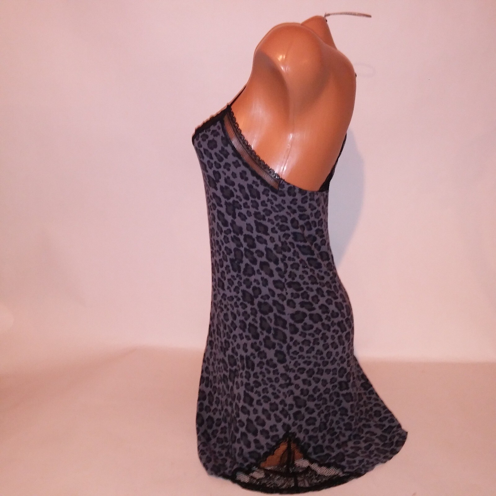как выглядит Victoria Secret Lingerie Chemise Slip Small Black Gray Leopard Modal 2019 Collec фото