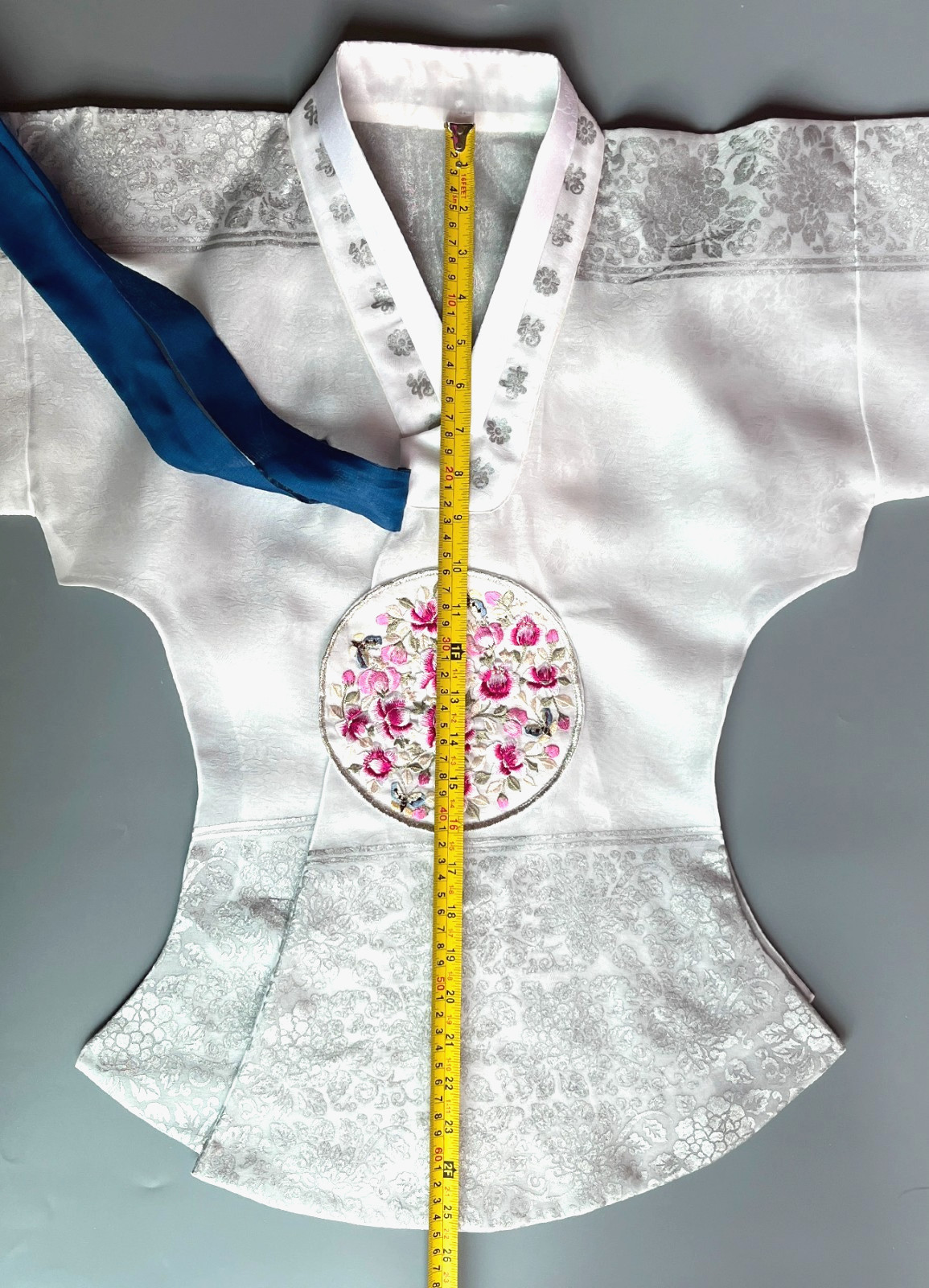как выглядит L-XL Traditional Korean Hanbok Dress- Dangui Silver Foil Top Pink Silk Skirt фото