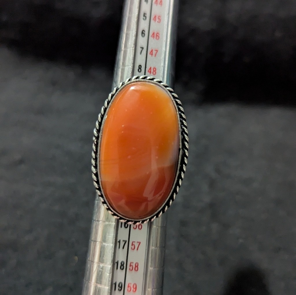 как выглядит Silver Plated Orange Agate Gemstone Oval Statement Ring - Size 6-8 Adjustable фото
