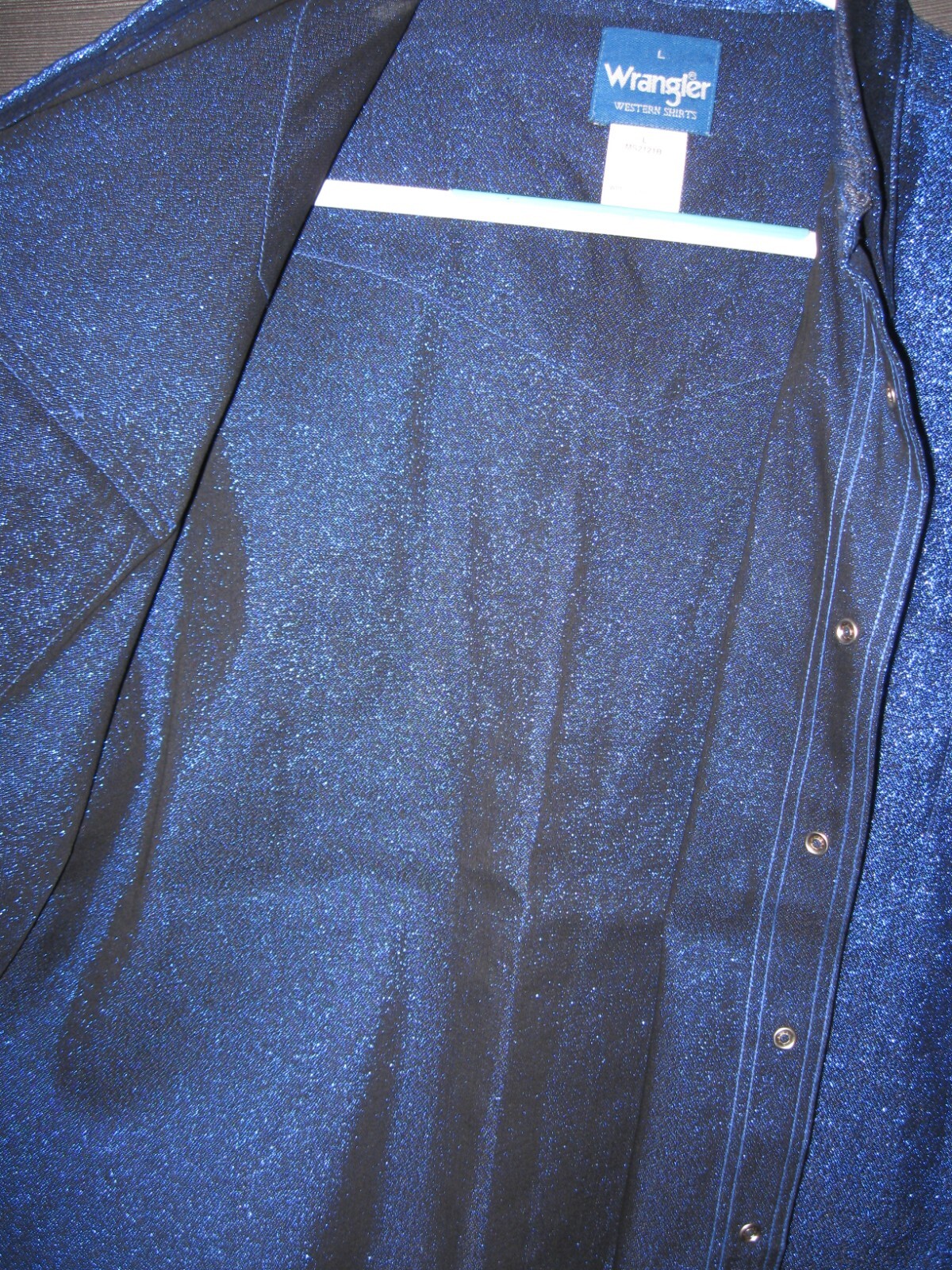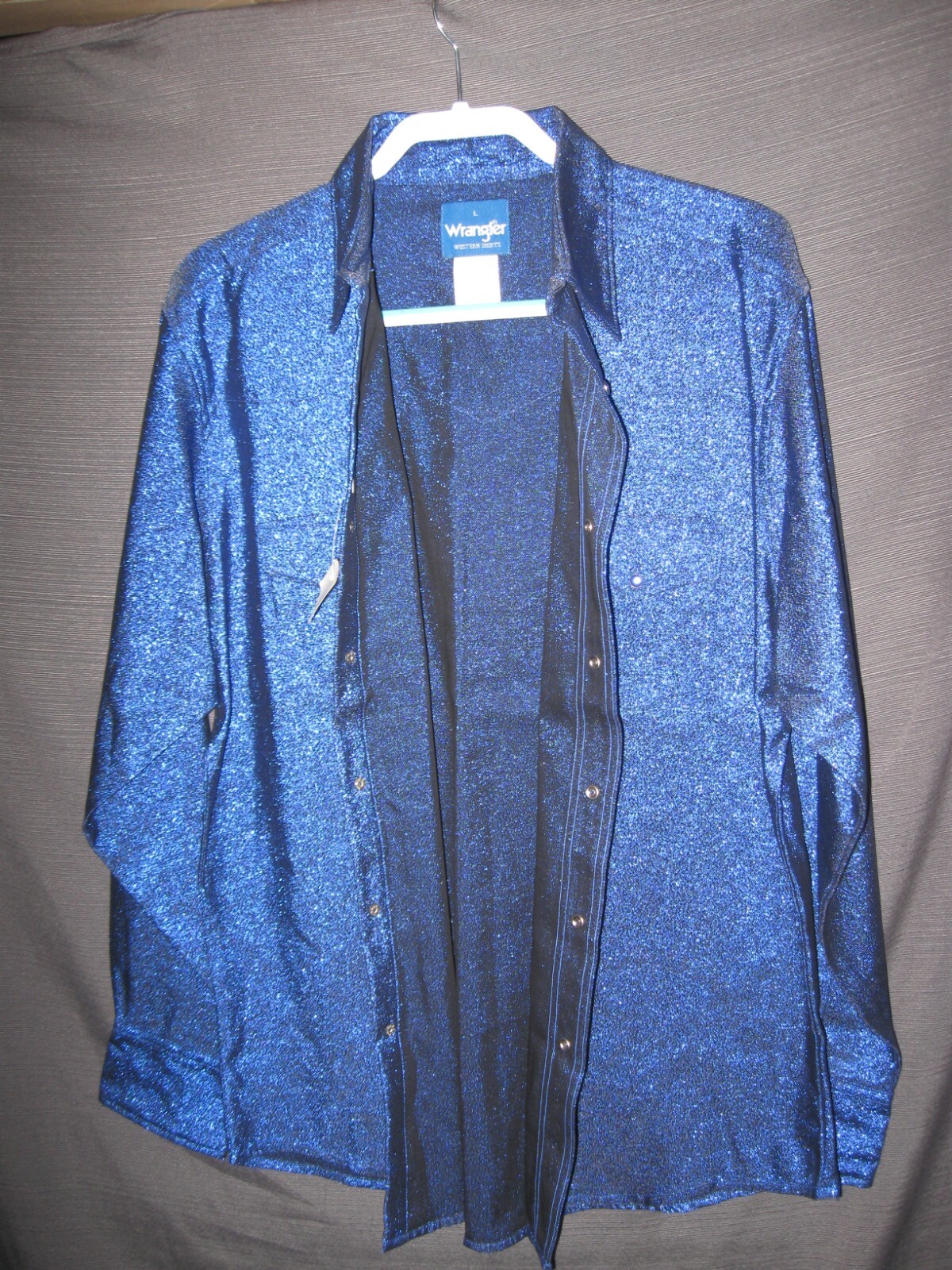 Vintage NWT Wrangler Cowboy Pearlized Snap Button Shirt Blue Western Disco