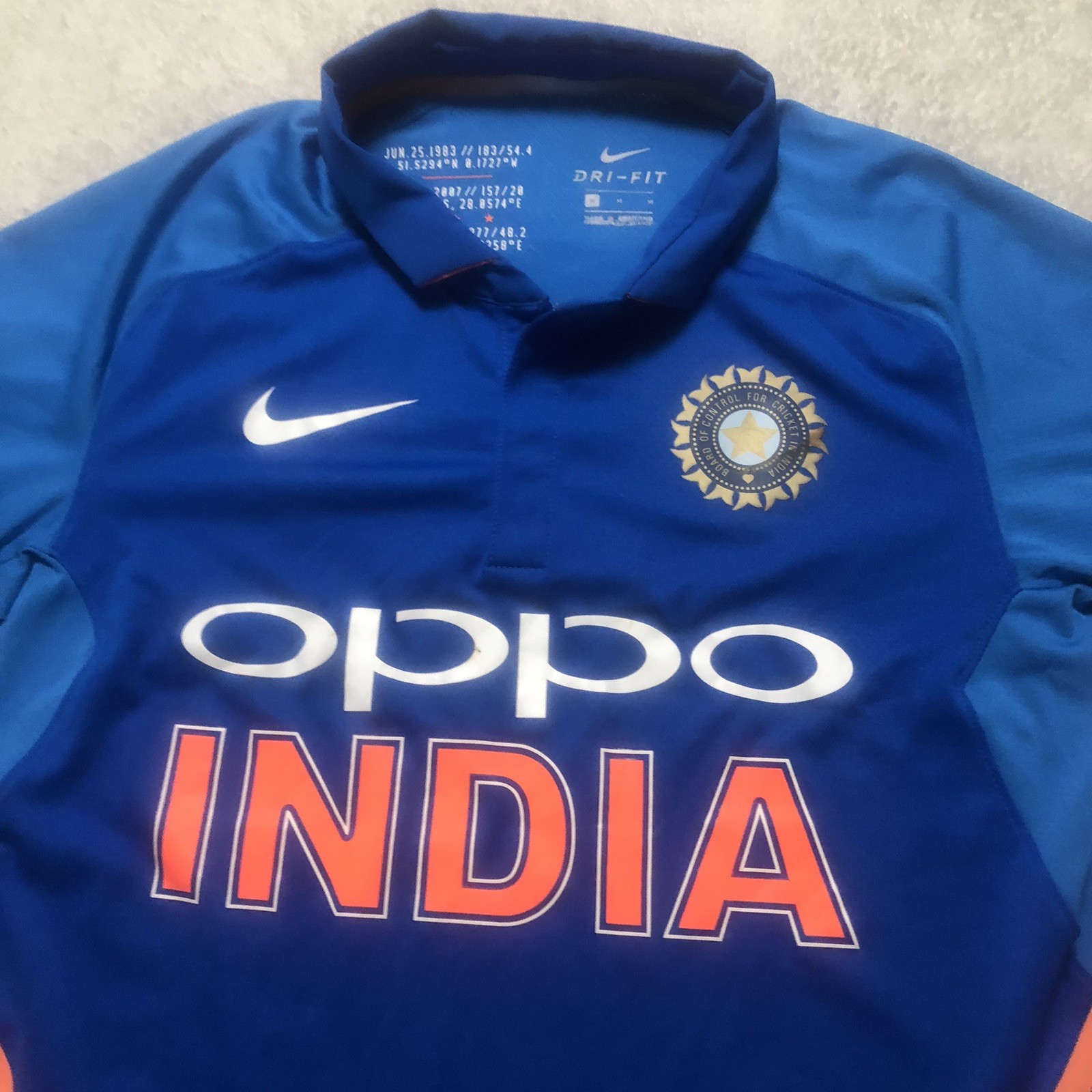 Men s Nike 2019 India National Team World Cup Cricket Jersey Top Size Adult M