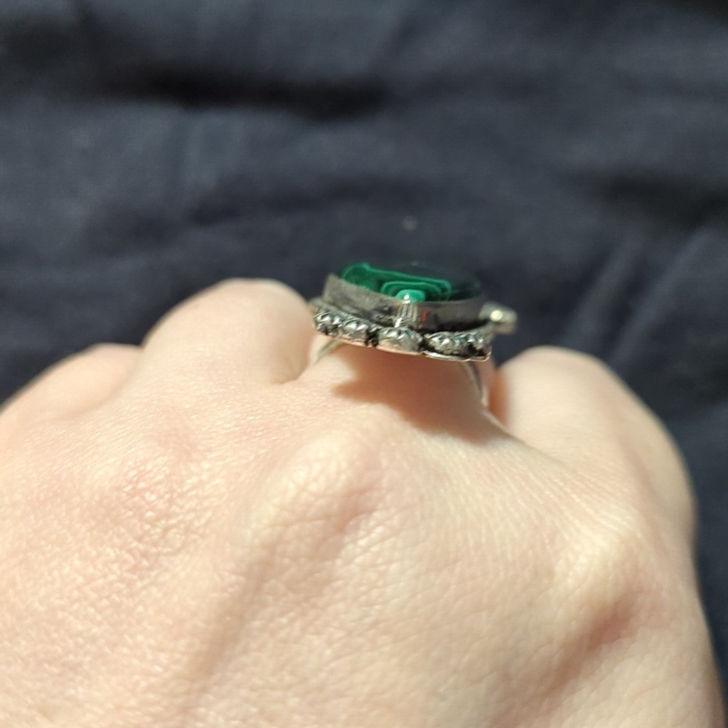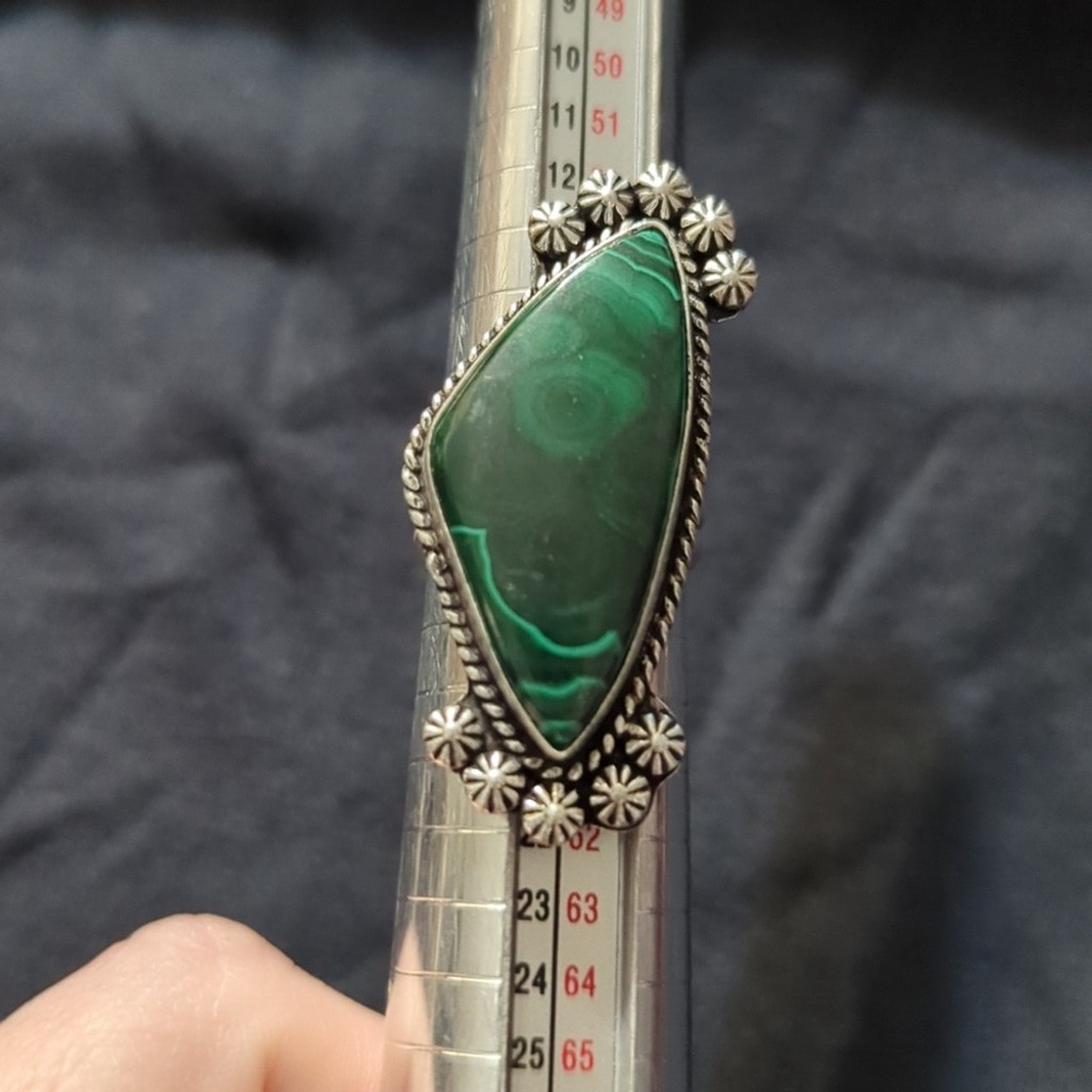 как выглядит Silver Plated Green Malachite Gemstone Irregular Shape Statement Ring - Size 7-9 фото