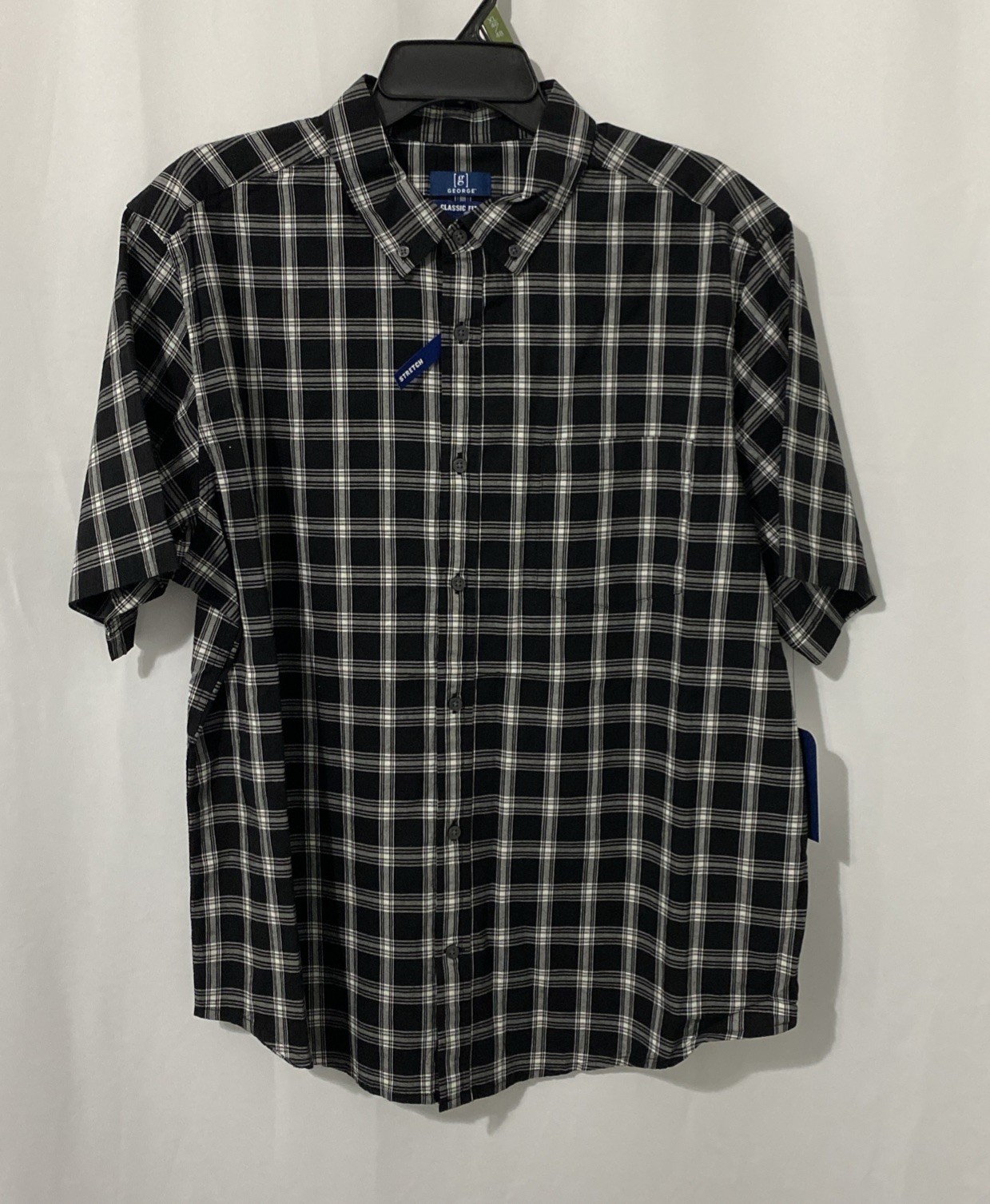 как выглядит George Mens Classic Short Sleeve Button Poplin Black Plaid Shirt Sz XL 46-48 фото