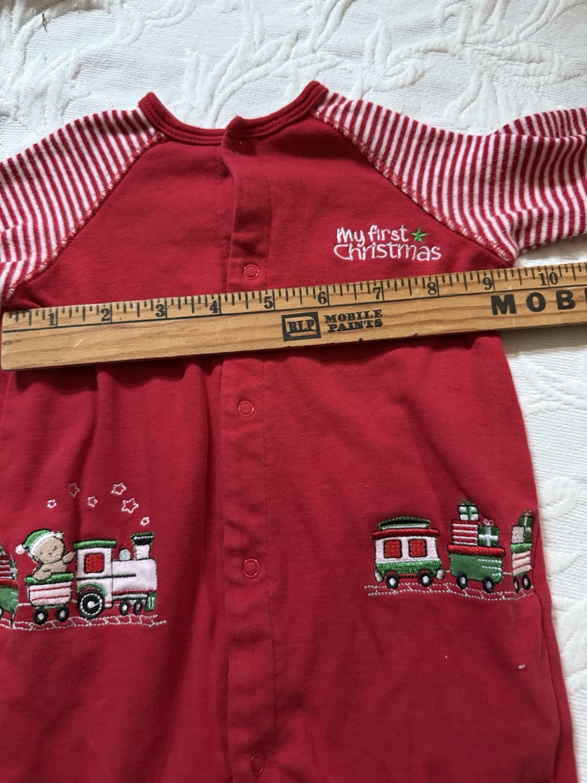 Vintage Little Me My First Christmas Jumpsuit Train Bear One Piece Size 6 Months