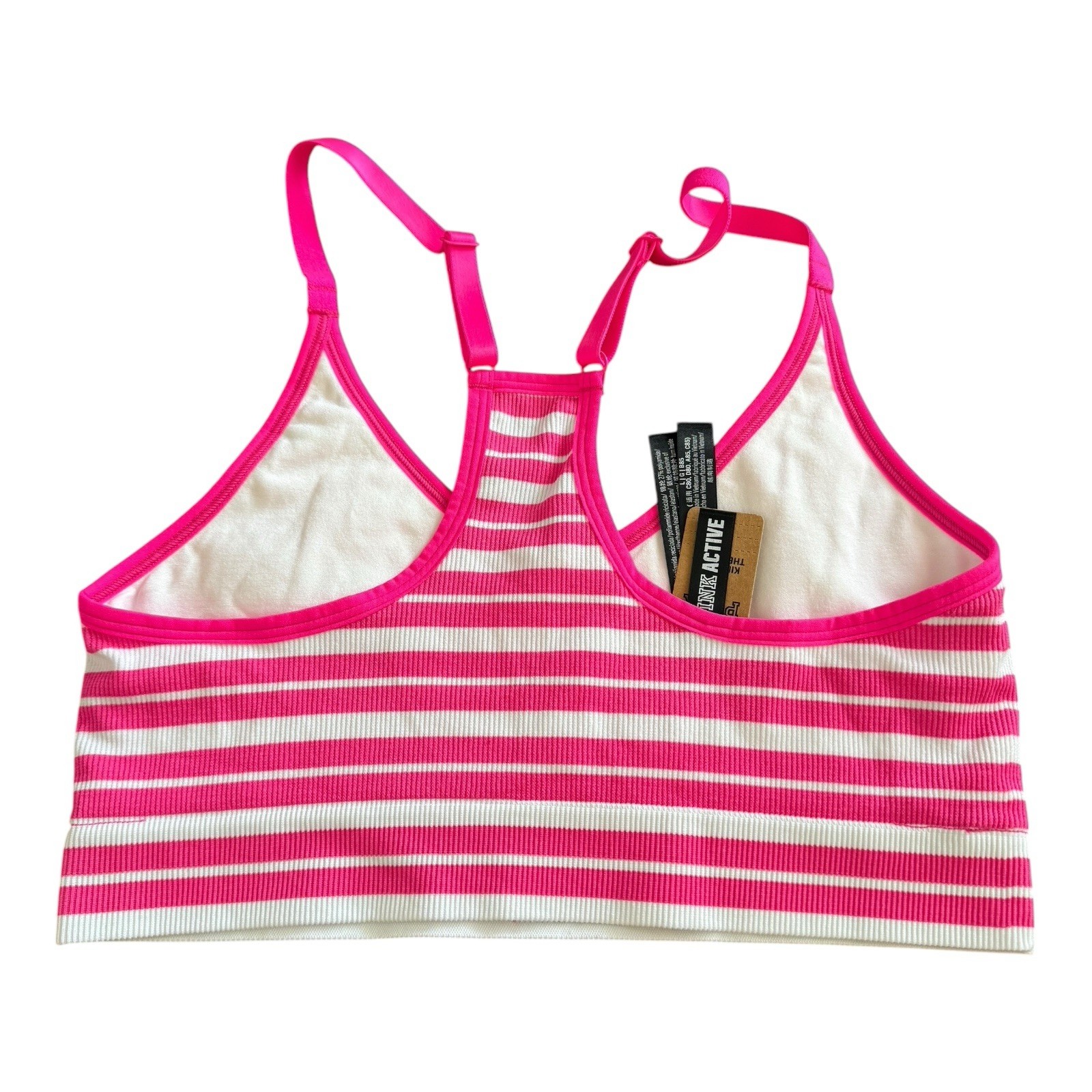 Victoria s Secret Sports Bra Active Seamless Sz Large Pink White Stripe