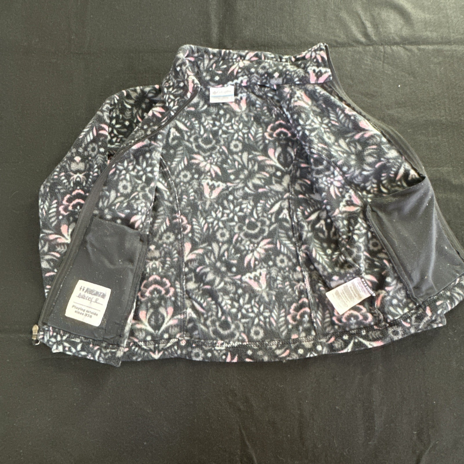 Columbia Fleece Jacket Kids Black Gray Pink Floral Print Light Full Zip XS 5 6X