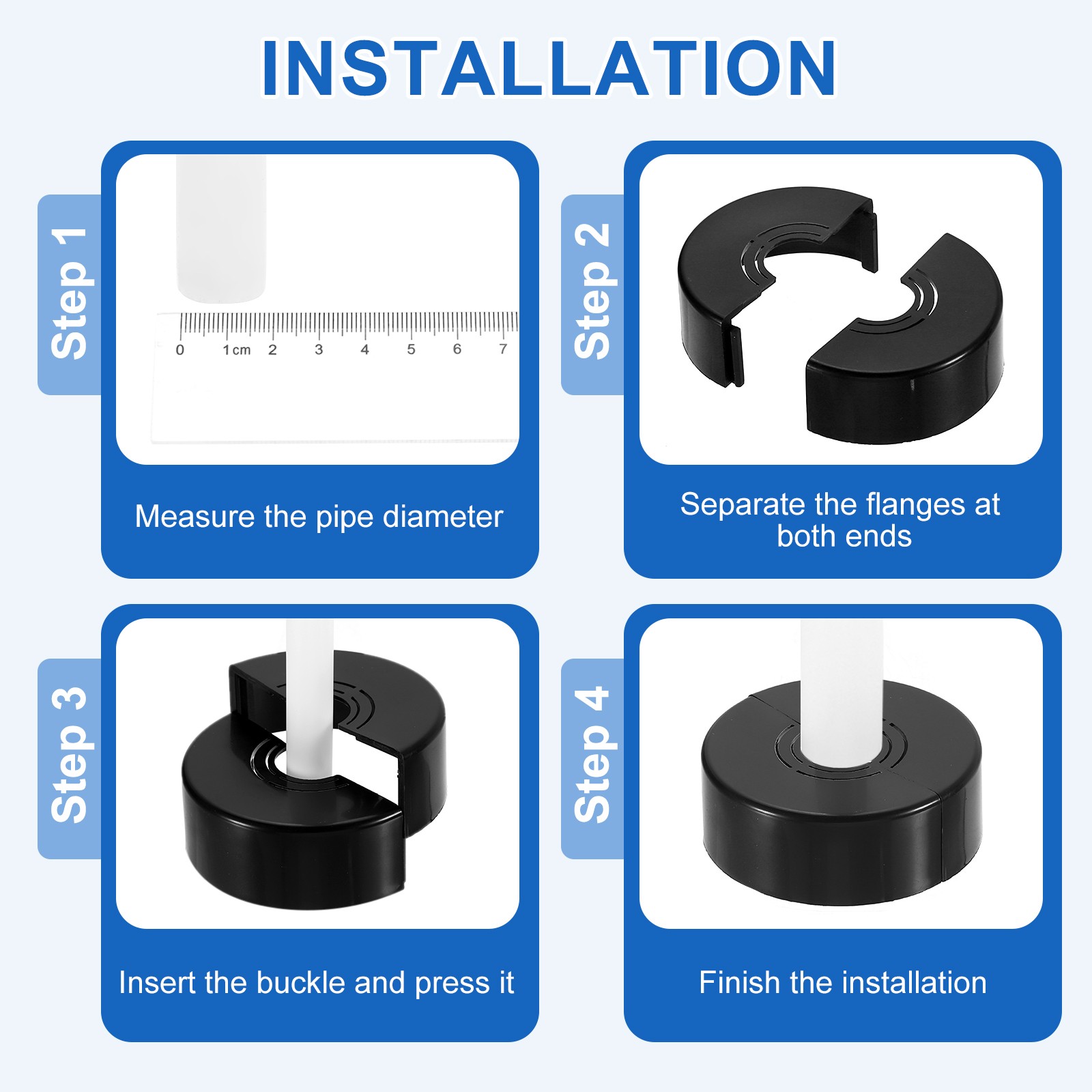 2Pcs Wall Split Flanges, 1.18 Thick Cuttable Escutcheon Plate, Black