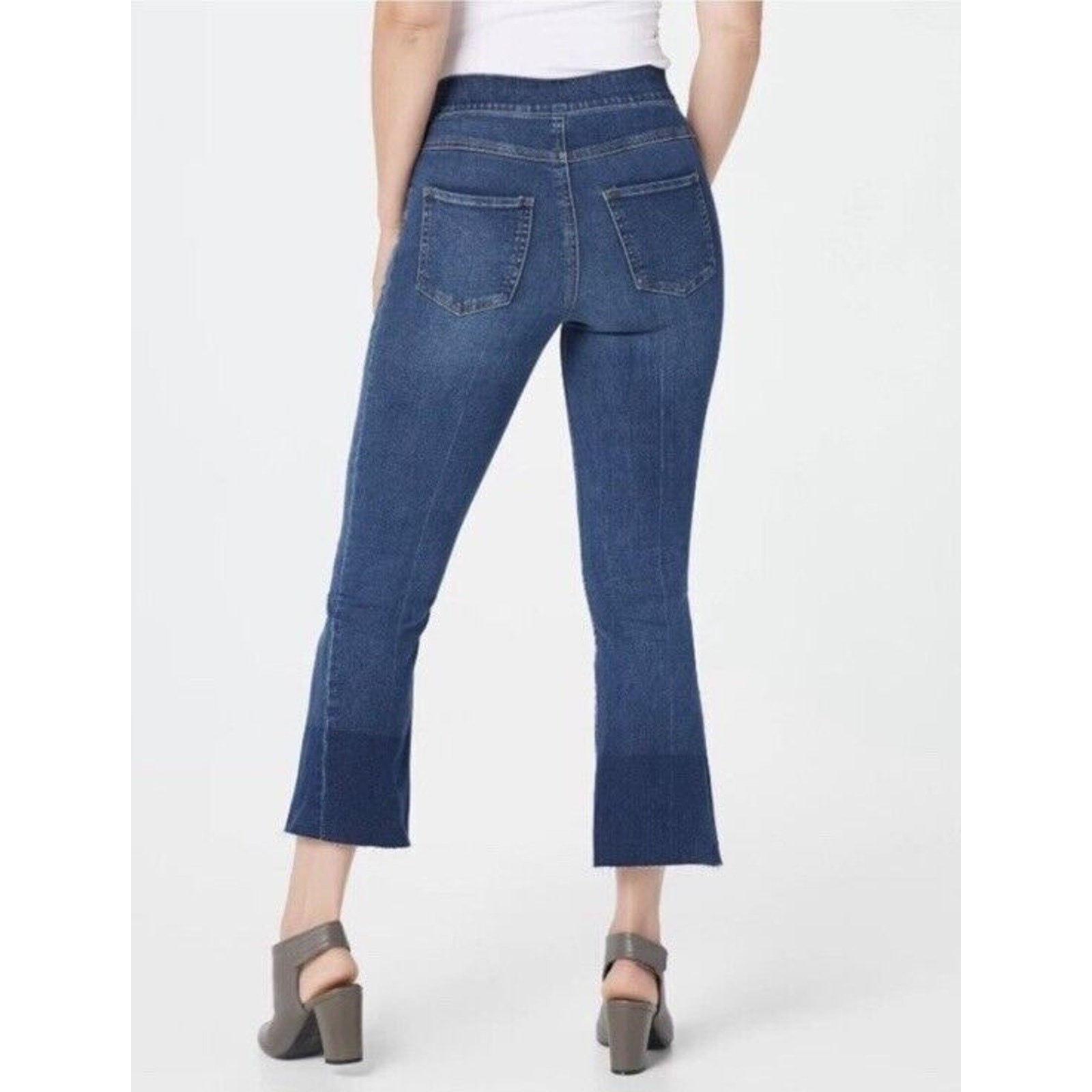 как выглядит SPANX Cropped Kick Flare Raw Hem Pull On Jeans Size XS NWT фото