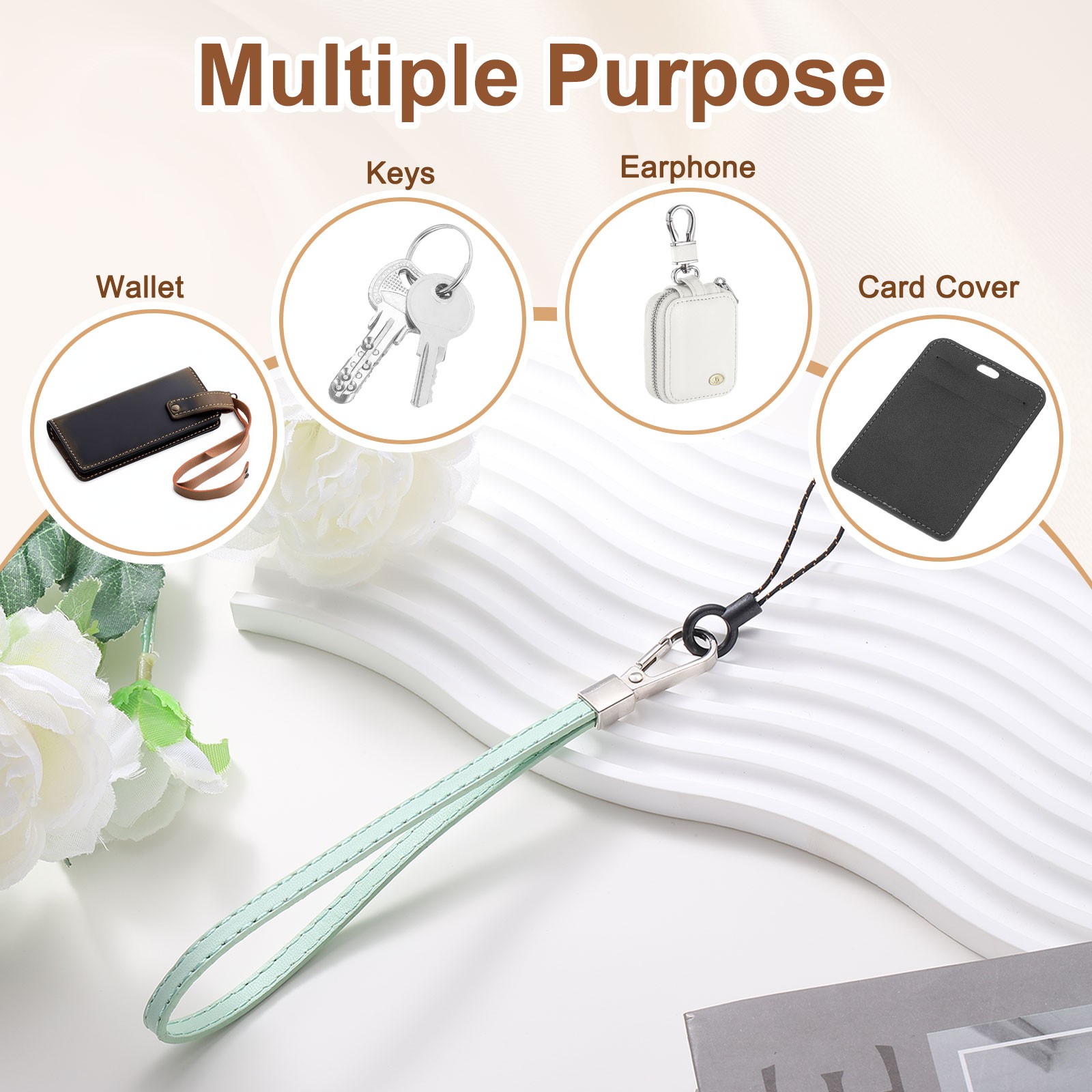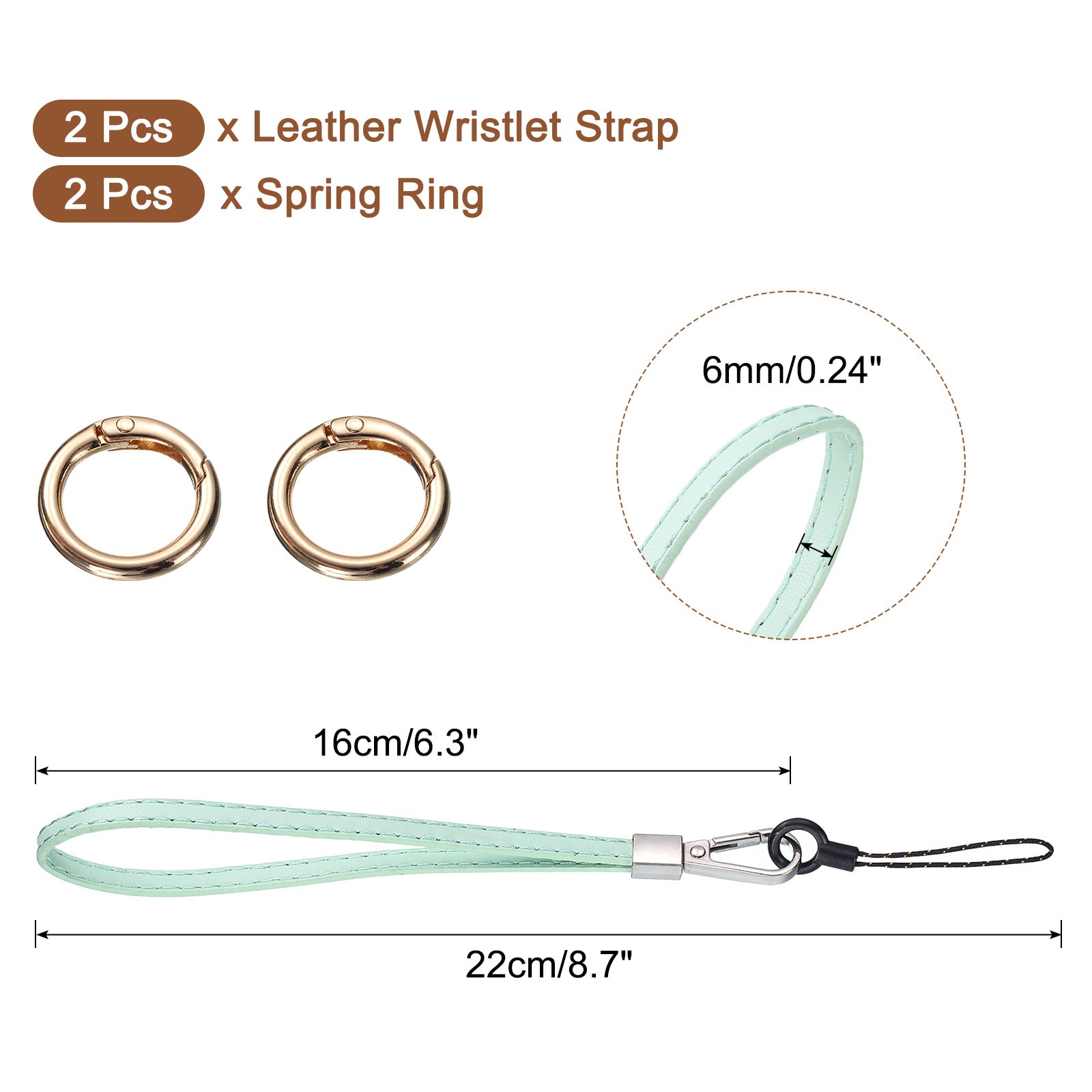 2 Pcs Leather Wristlet Strap Wrist Lanyard for Cellphone Keychain Light Green