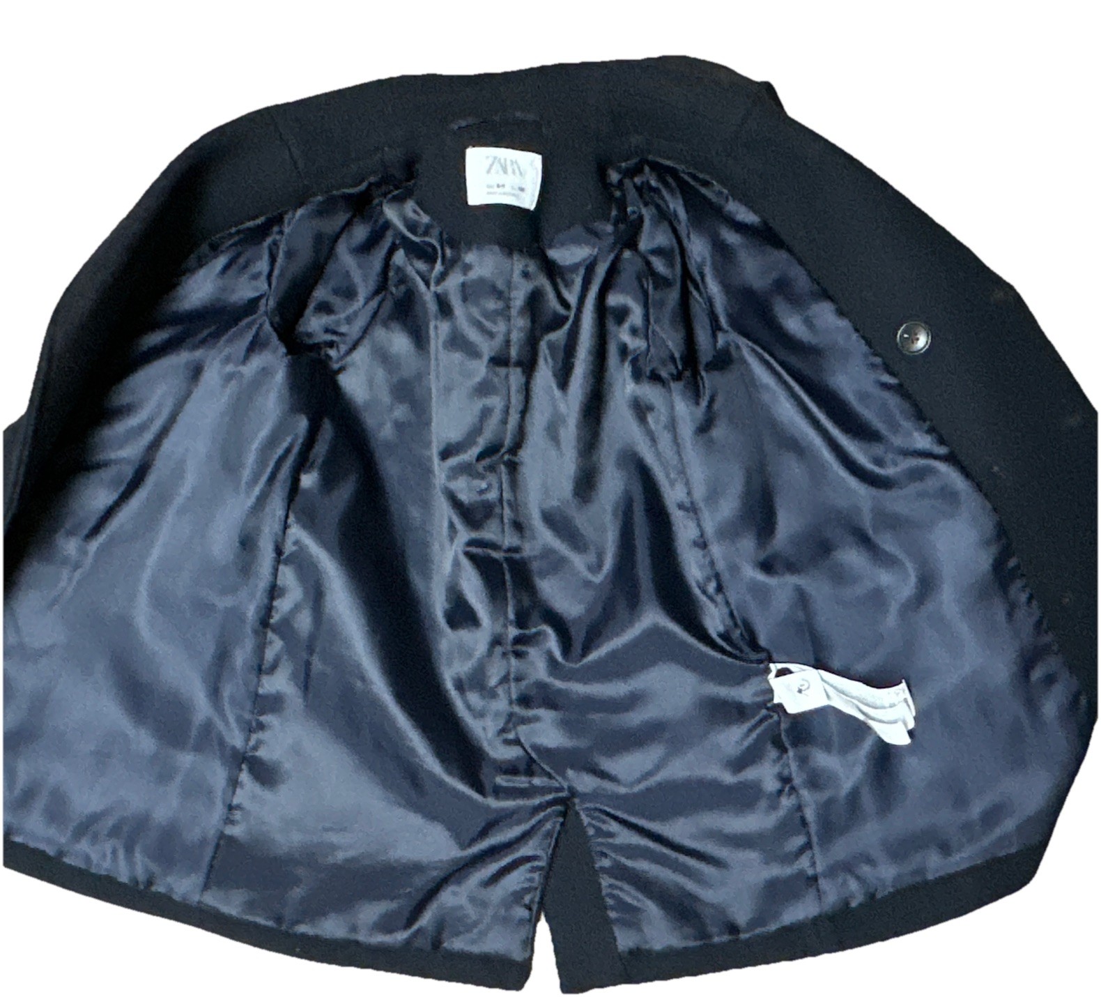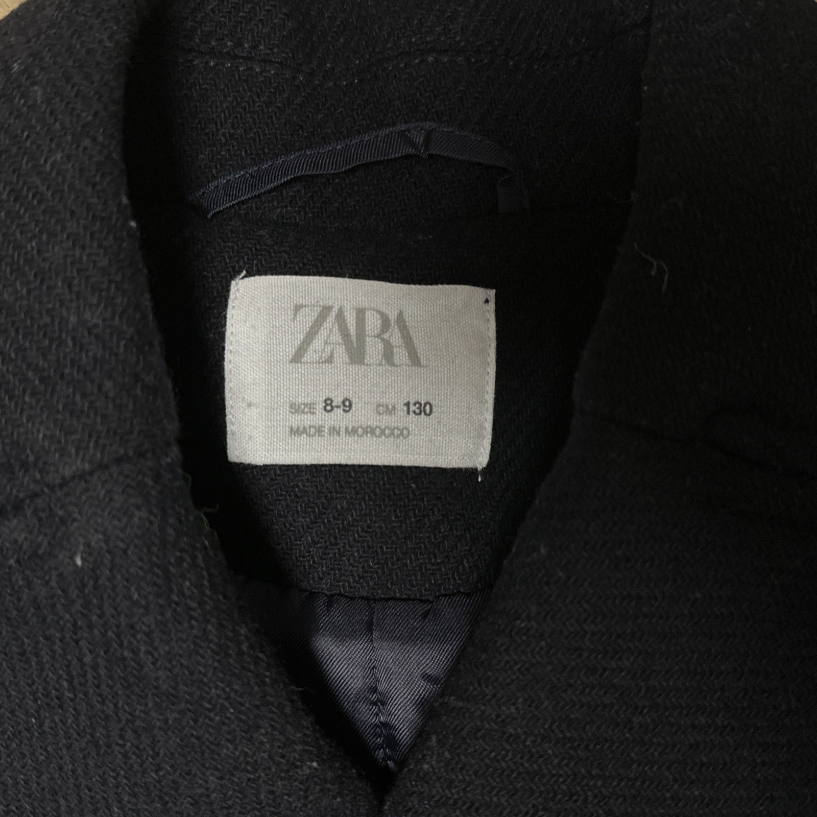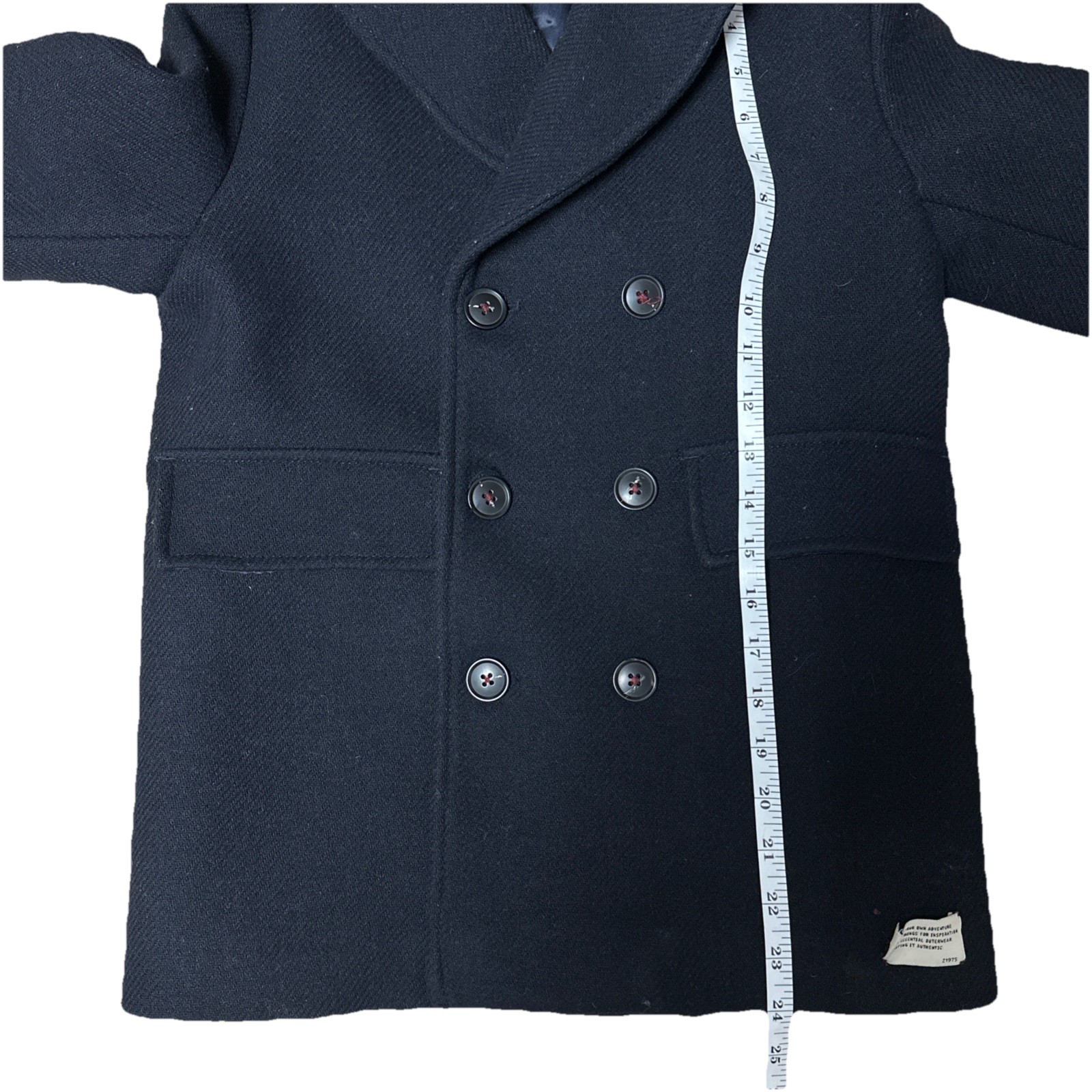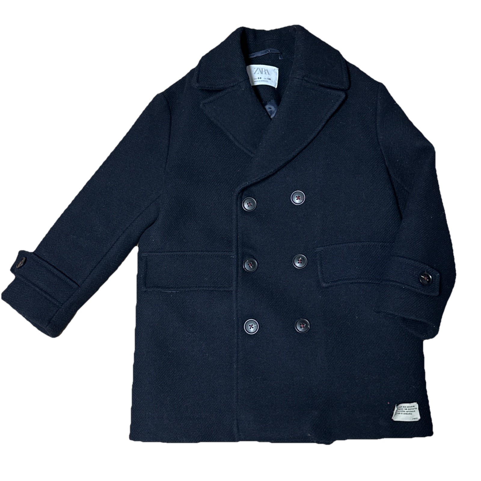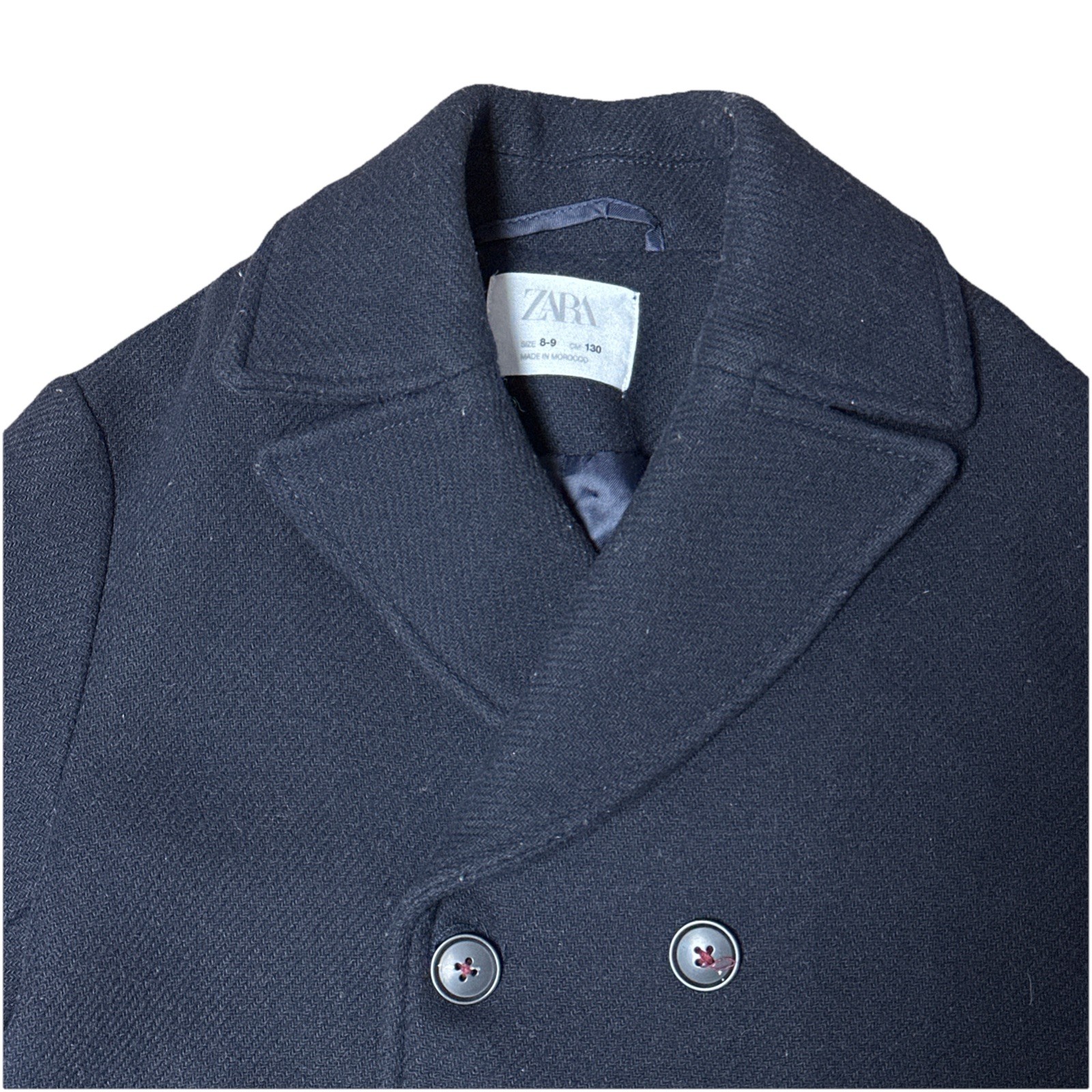 как выглядит Zara Kids 8-9 Dark Navy Double Breasted Wool-Blend Winter Peacoat Jacket EUC фото