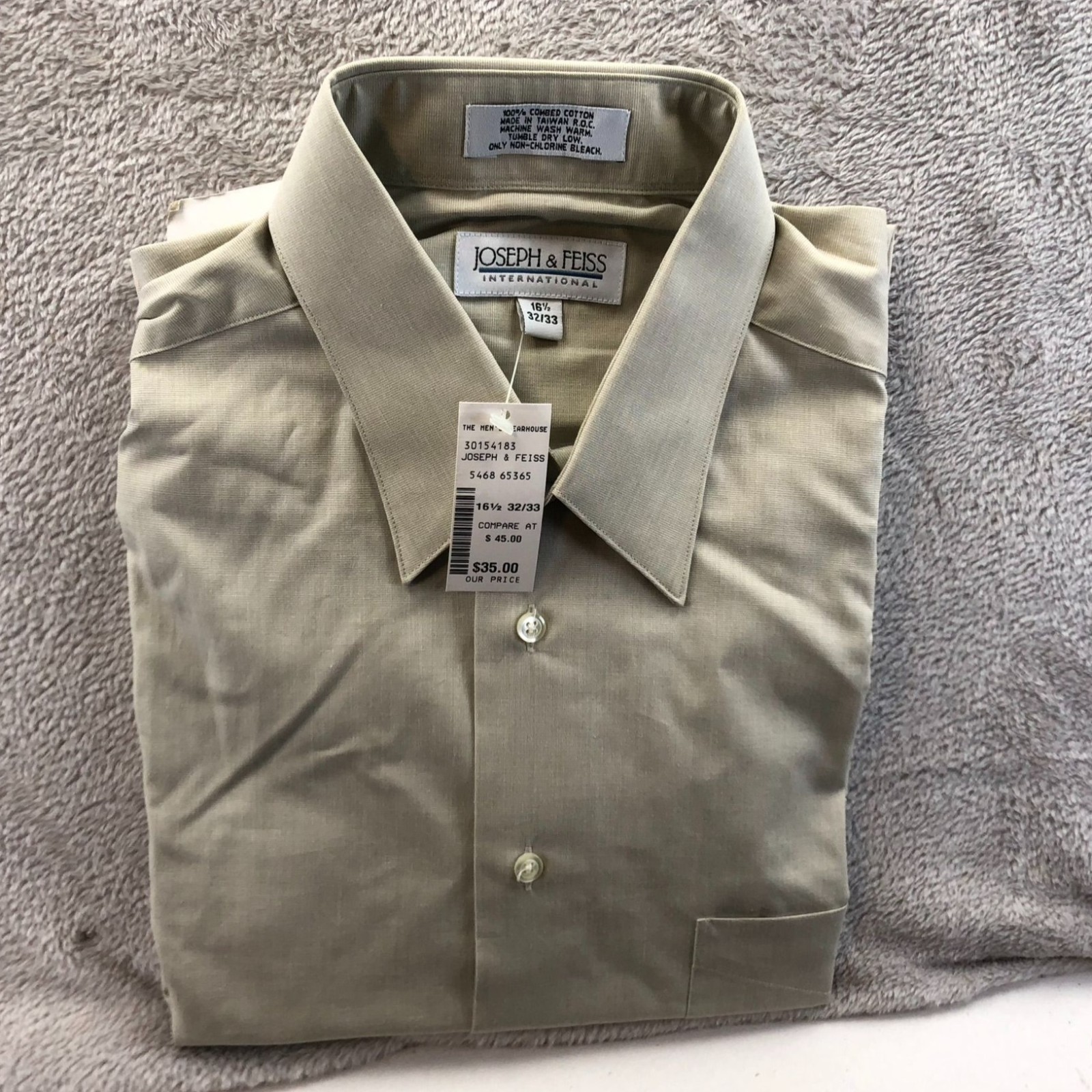 как выглядит NWT Joseph Feiss Mens Dress Shirt Size 16.5 Neck Beige Classic Workwear Casual фото