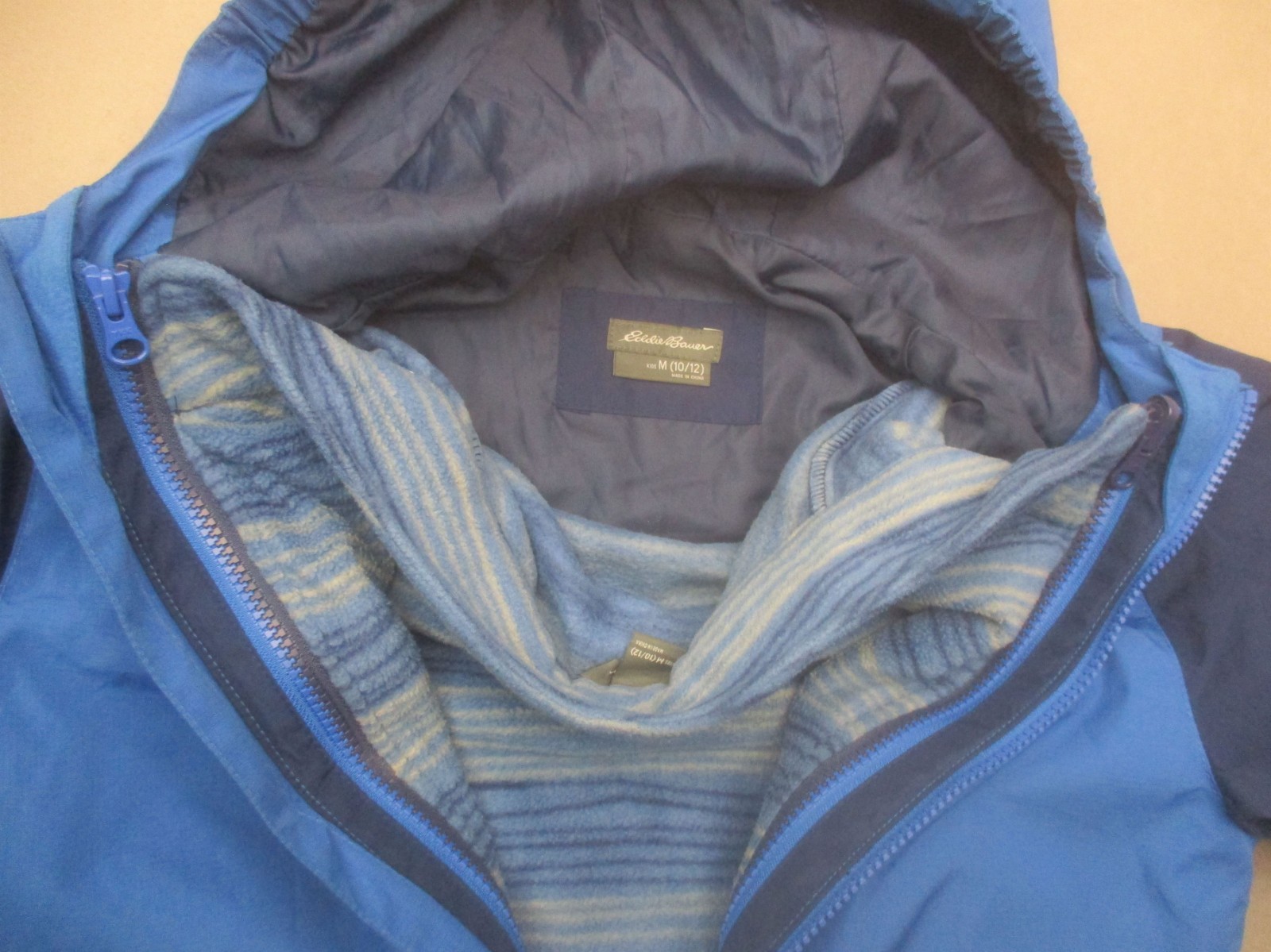 Eddie Bauer Size M 10/12 Boys Blue Hooded Lined Full Zip 3-in-1 Jacket 727