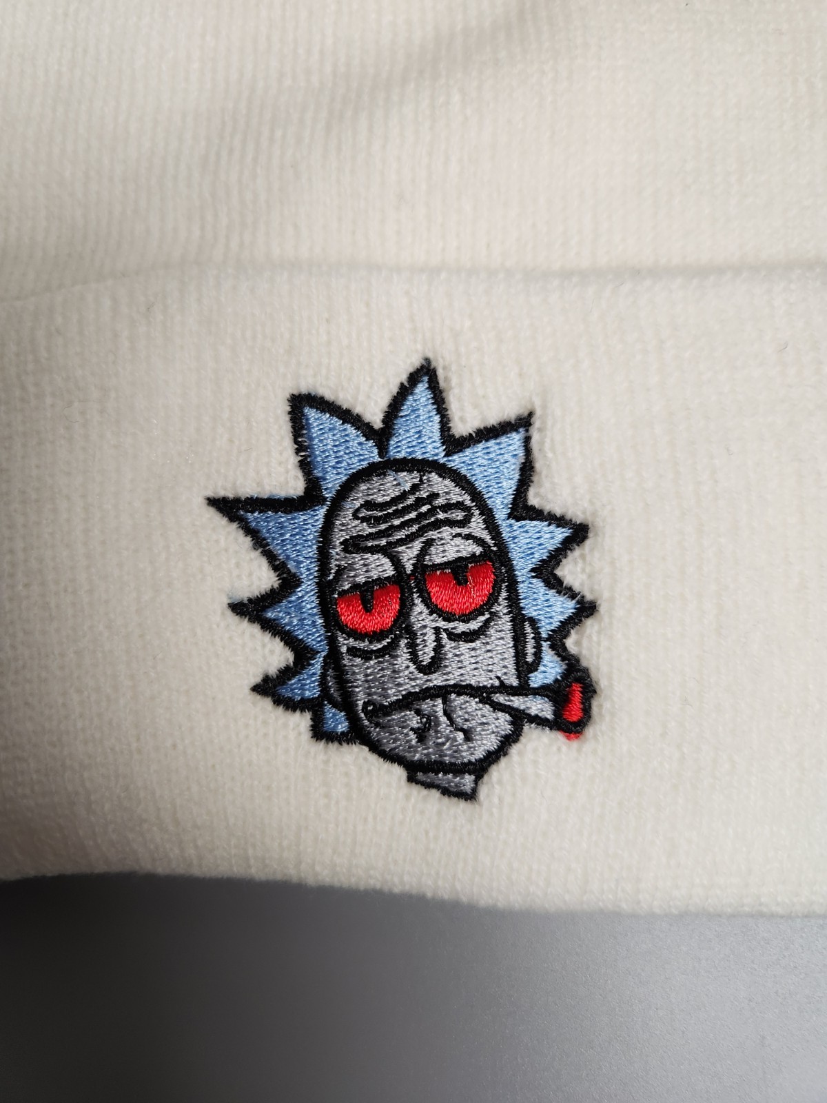 как выглядит Embroidered Rick and Morty White Cotton Cuffed Knit Beanie Hat Brand New фото