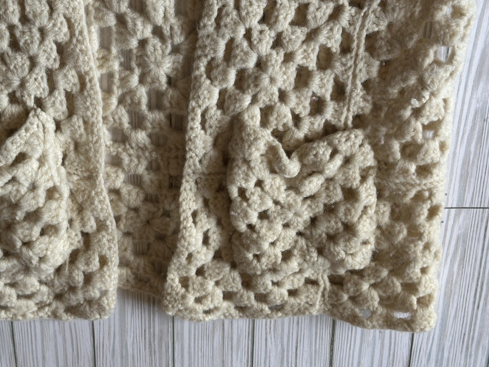 Crochet Womens Cream Festival Boho Hippie Granny Afghan Handmade Open Front Vest