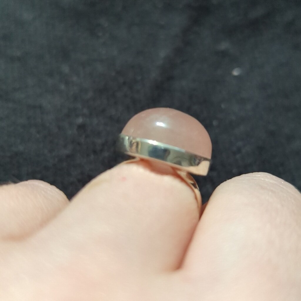 как выглядит Sterling Silver Pastel Pink Rose Quartz Gemstone Domed Statement Ring - Size 5 фото