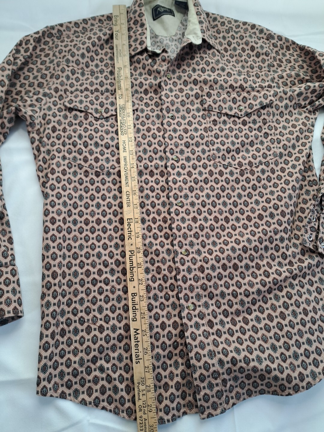 как выглядит Vtg Roper Pearl Snap Mens Shirt Western Cowboy Horseshoes All Over Med Paisley фото