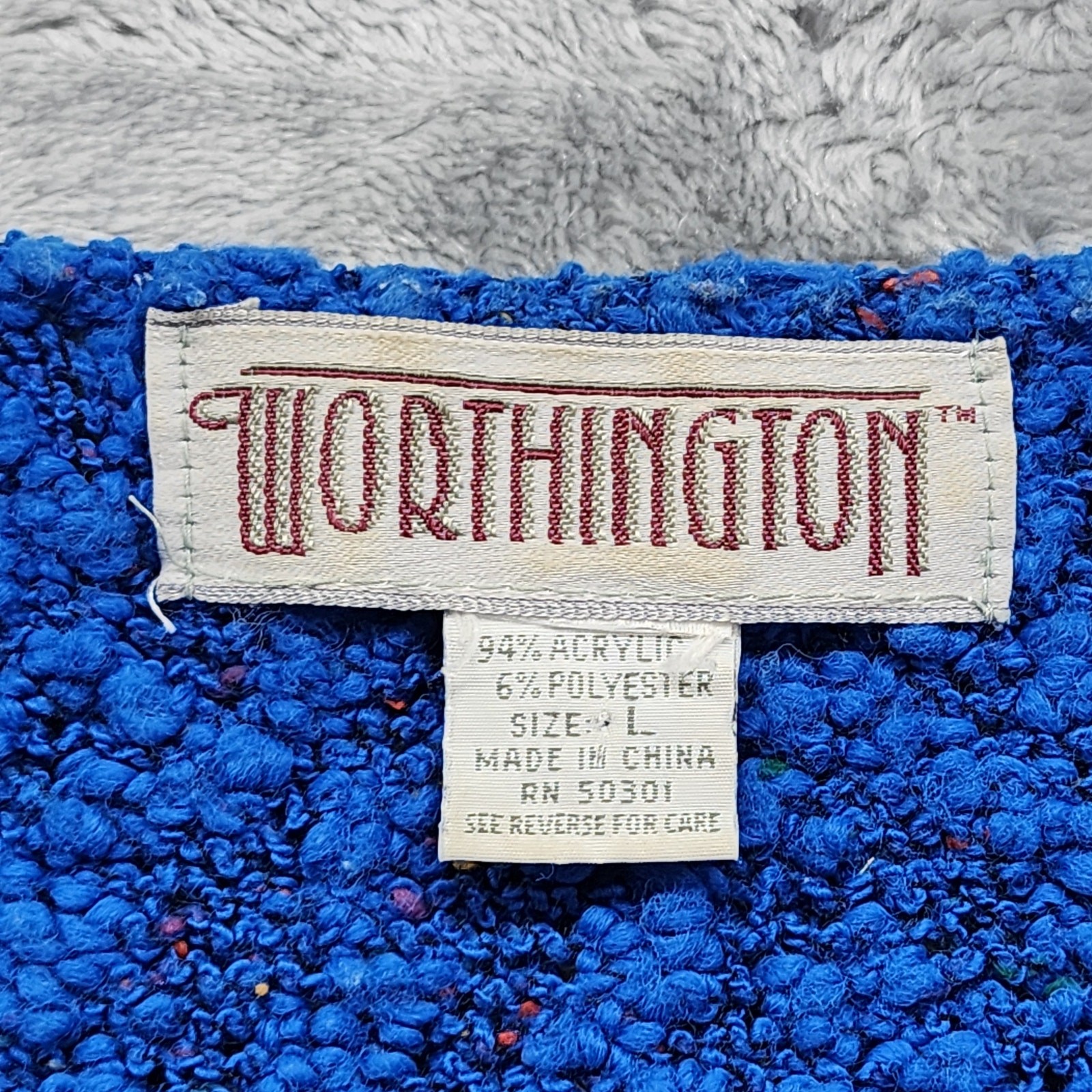 Vintage Worthington Sweater Womens L Blue V-Neck Short Puff Sleeve Pullover
