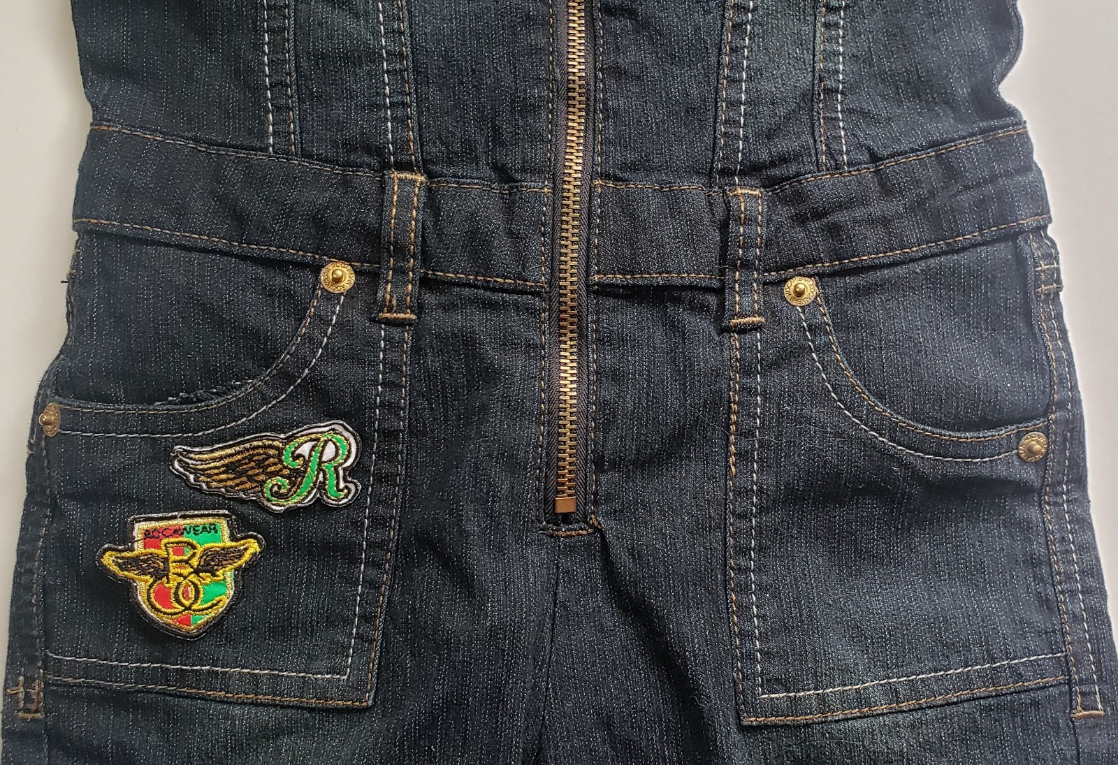 как выглядит ROCAWEAR 1999 Y2K Baggy Denim Embroidery Hip Hop Jumpsuit Romper Jumper Size S4 фото