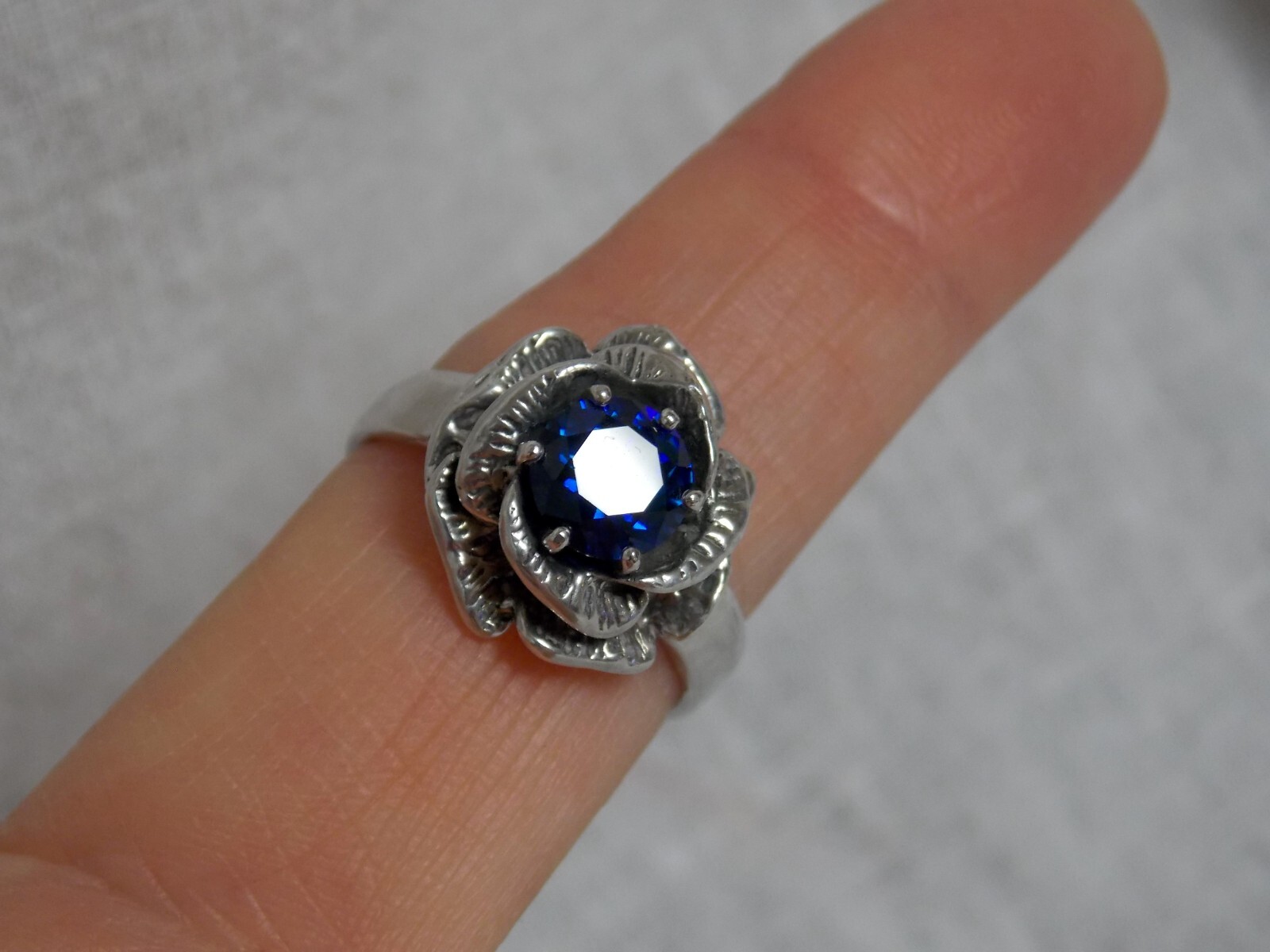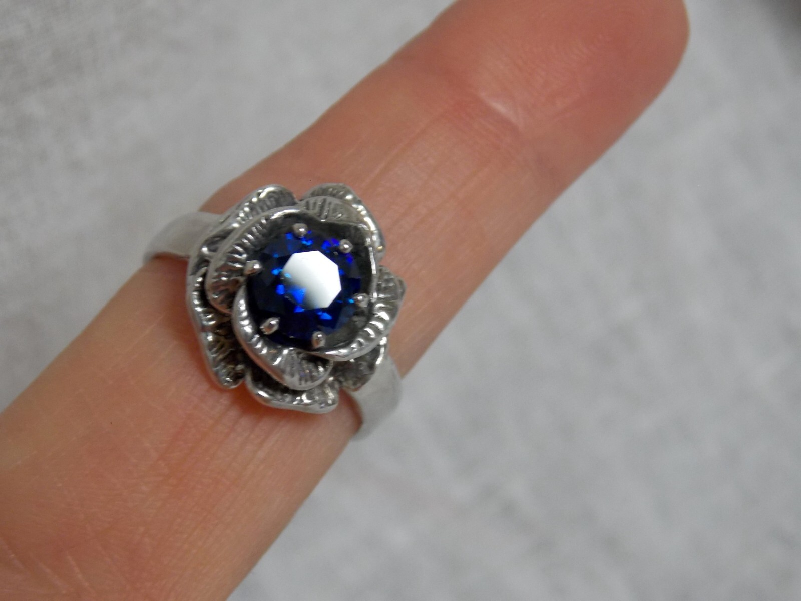 как выглядит Blue Lab Sapphire Size 8.5 Ring 925 Sterling Silver Vint Style Flower USA Made фото
