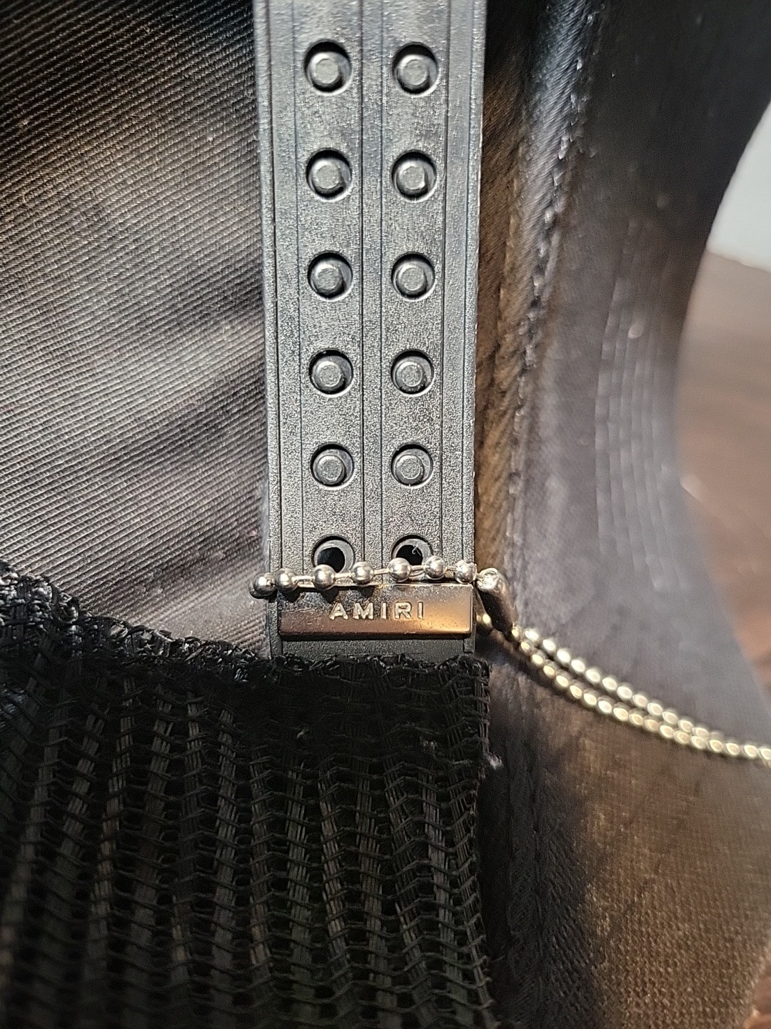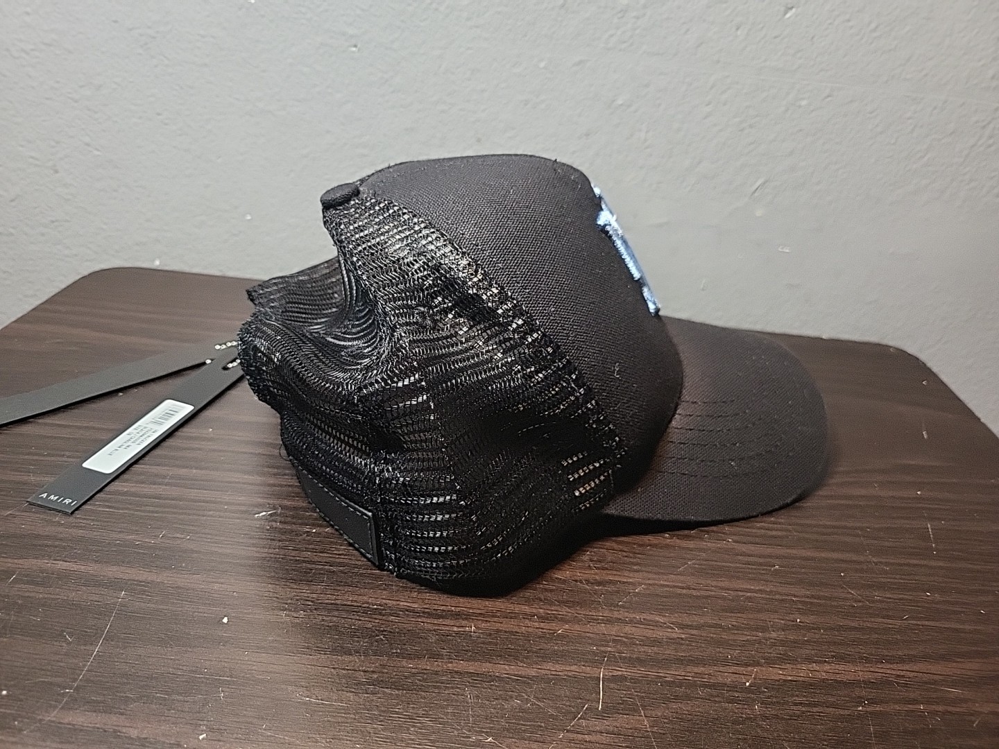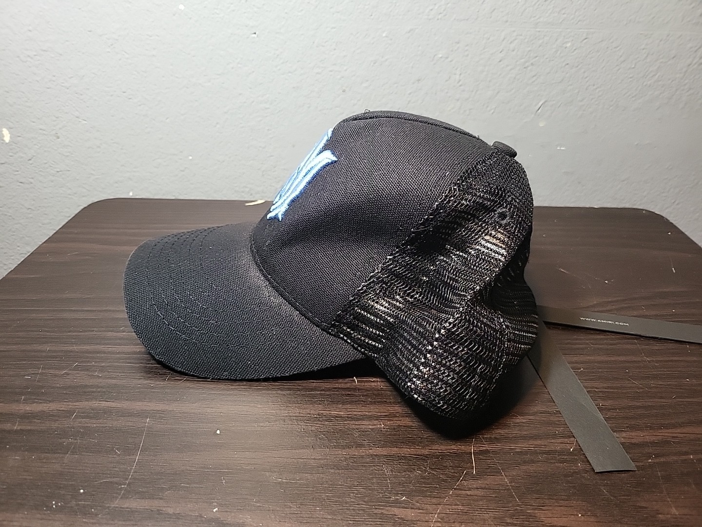 как выглядит AMIRI Black/Carolina Blue Logo Embroidered Snap Back Trucker Cap 320 фото