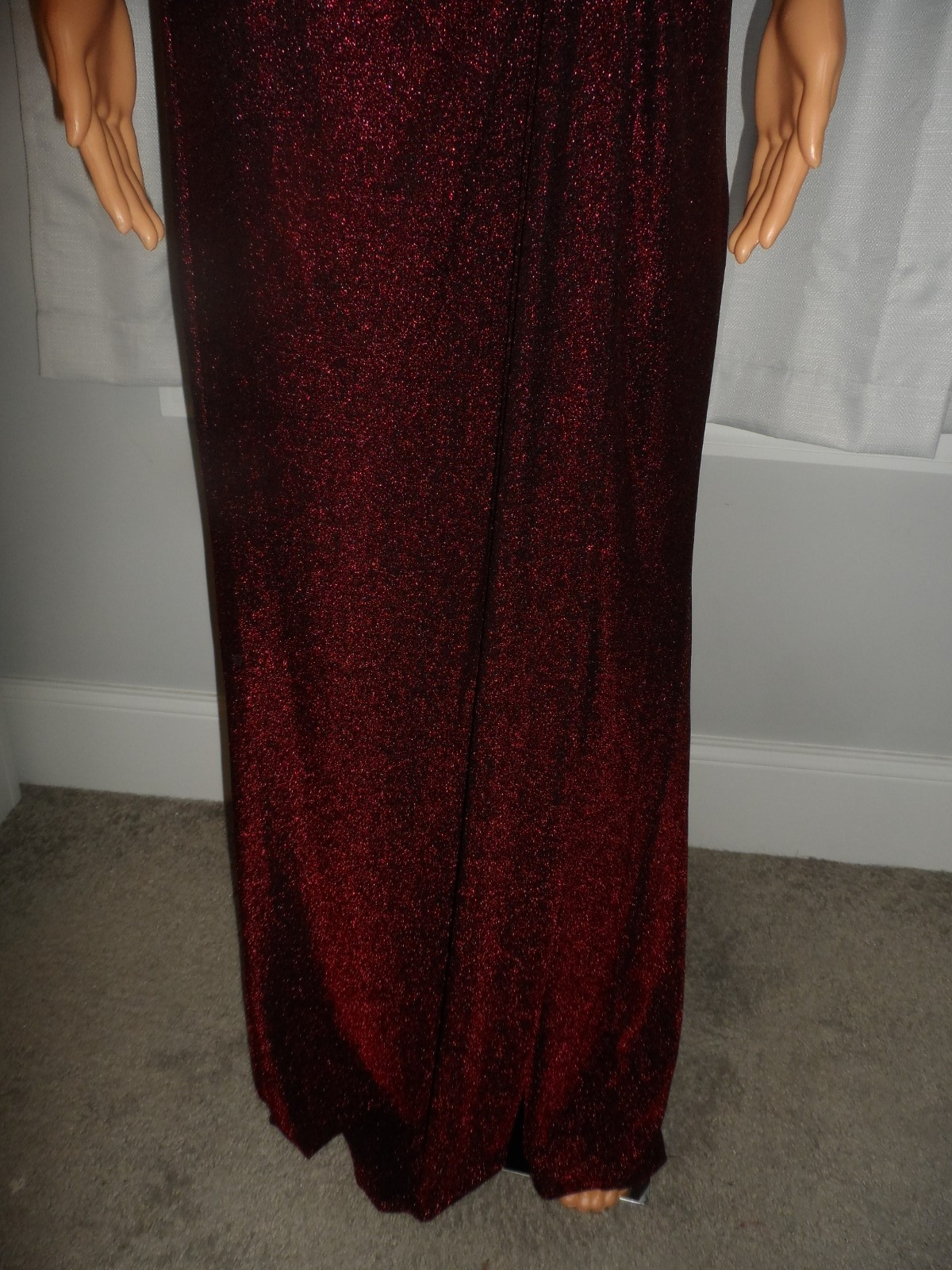 как выглядит Beautiful Adrianna Papell size 10 burgundy metallic one shoulder dress gown NWT фото