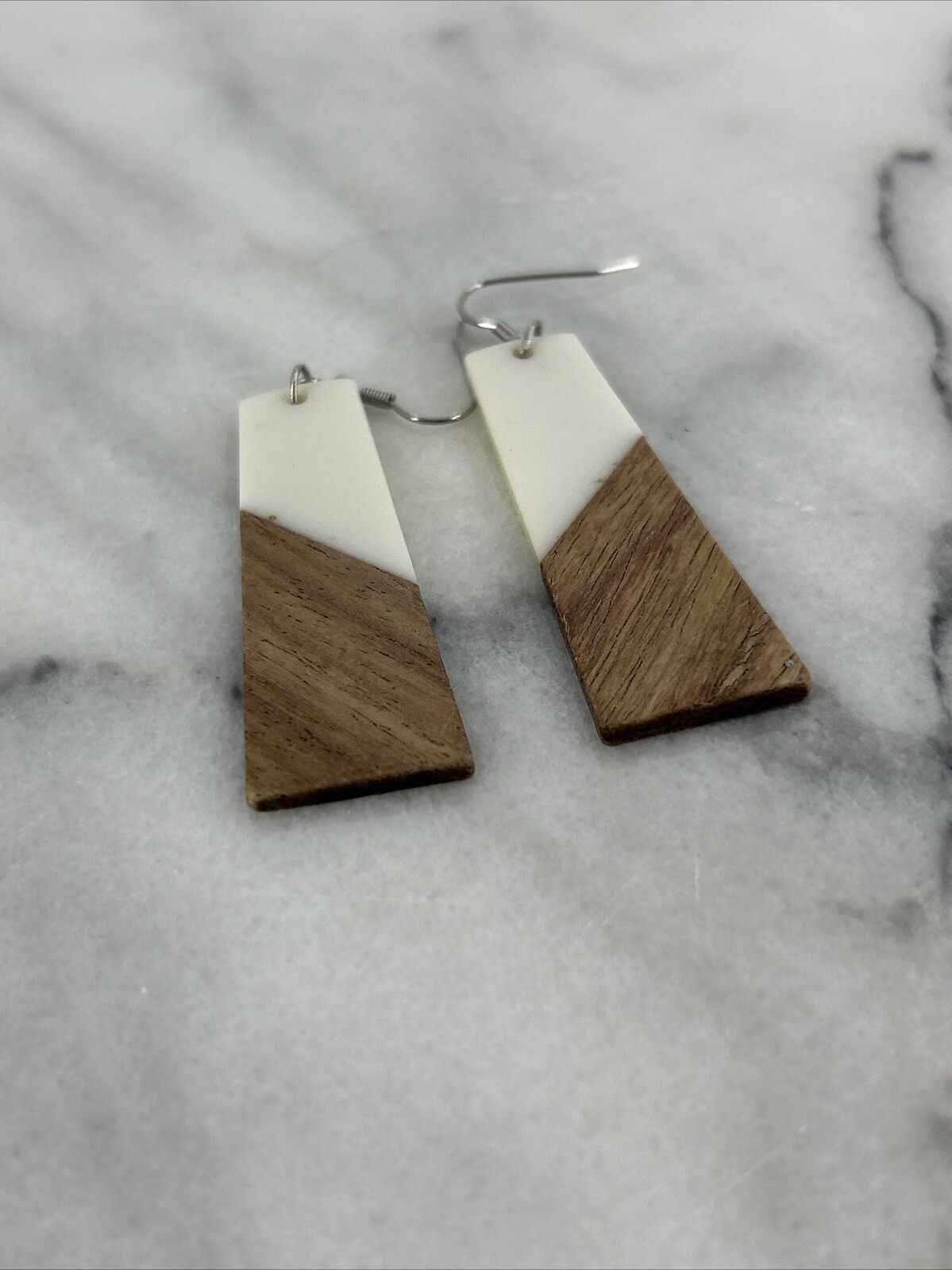Natural Wood Acrylic Boho Earings Dangle 2 1/4 Drop Womens Fashion Jewelry