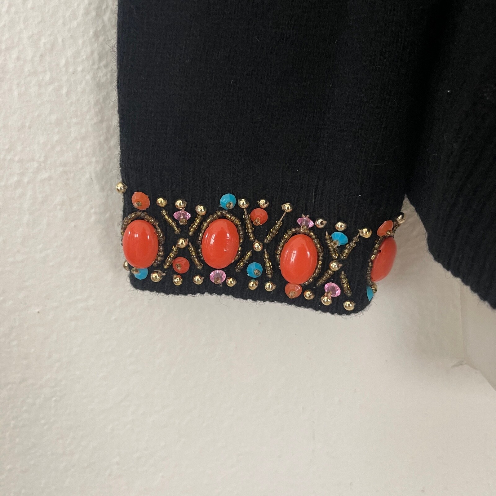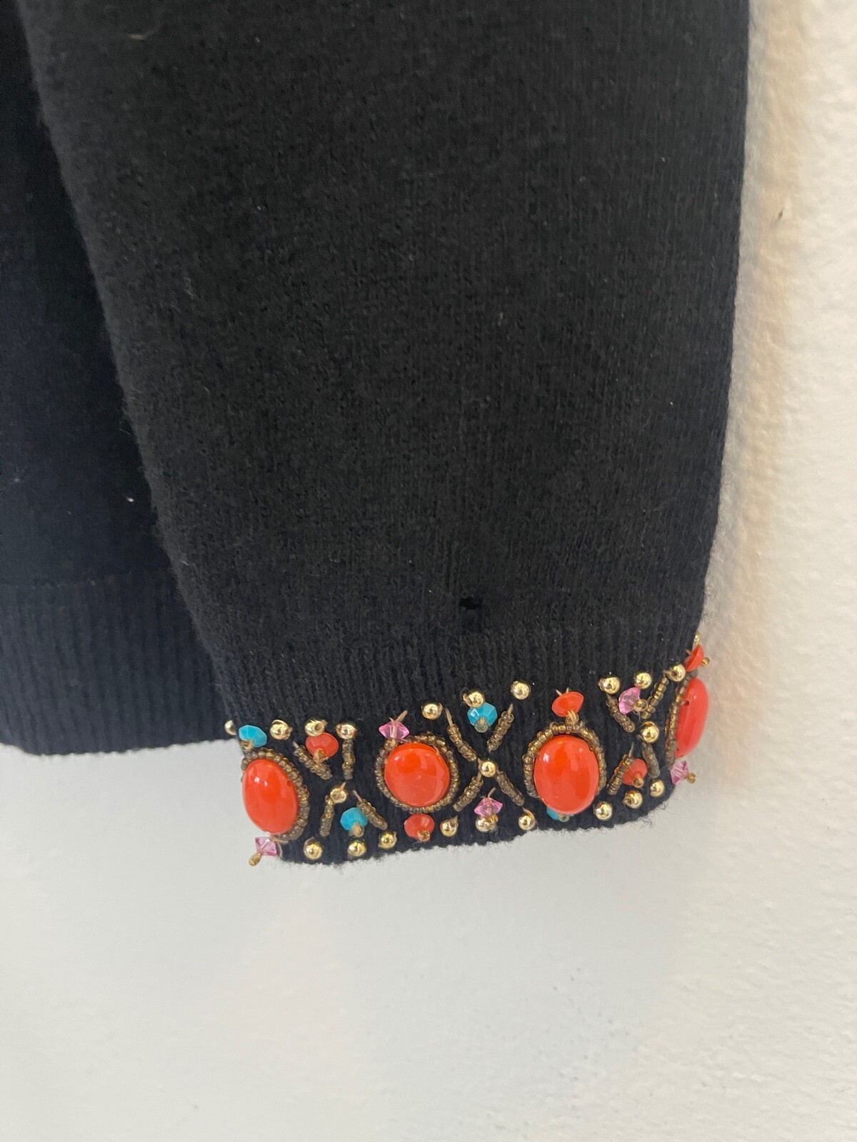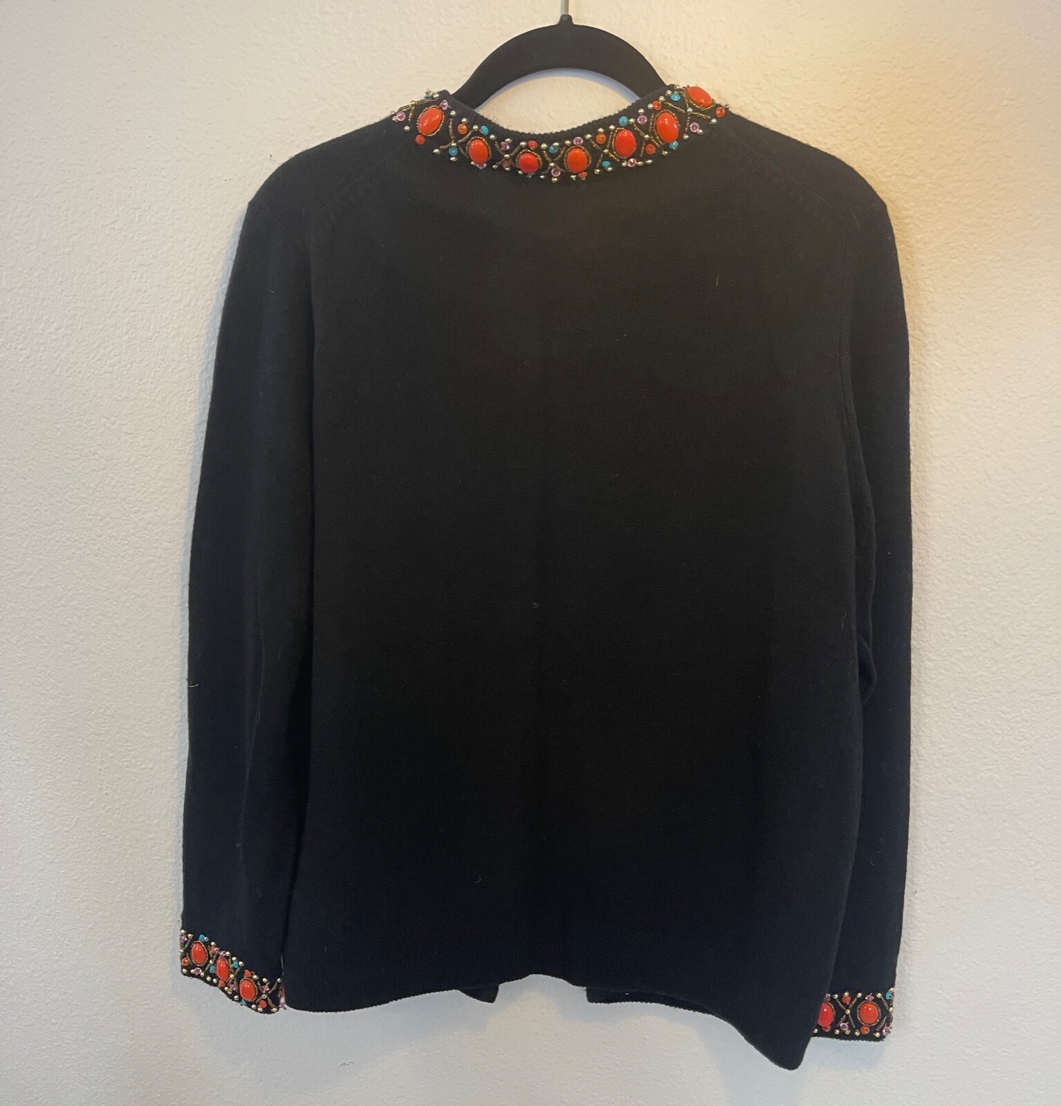 как выглядит CERVELLE Sweater Beaded Embellished Open Cardigan Ramie Cotton Black Vintage L фото