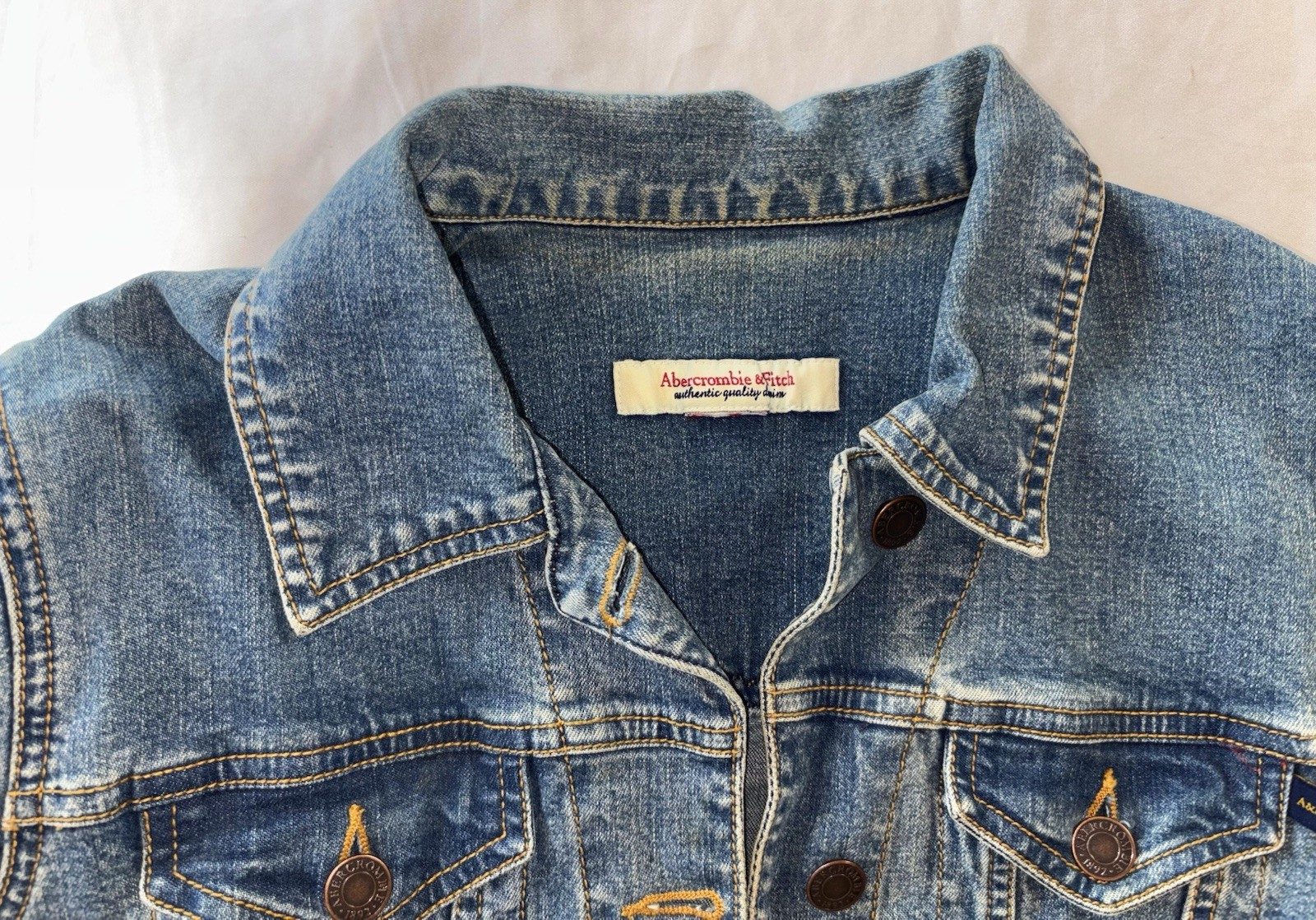как выглядит Abercrombie Fitch Jean Jacket Youth Medium Distressed Denim EUC фото