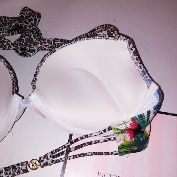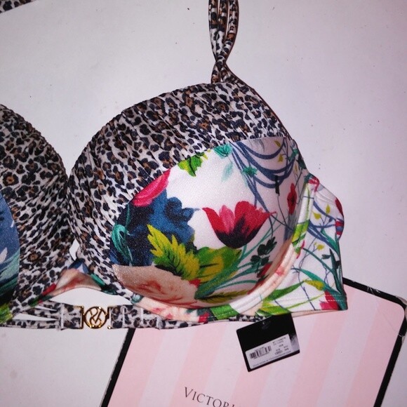 Victoria Secret Swim Bikini Top Bombshell Push Up Leopard Floral Colorful
