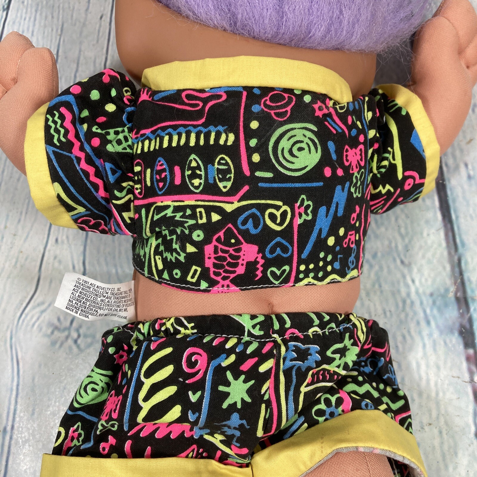1991 Treasure Troll Doll Soft Body Plush Blue Eyes and Belly Stone Ace Novelty