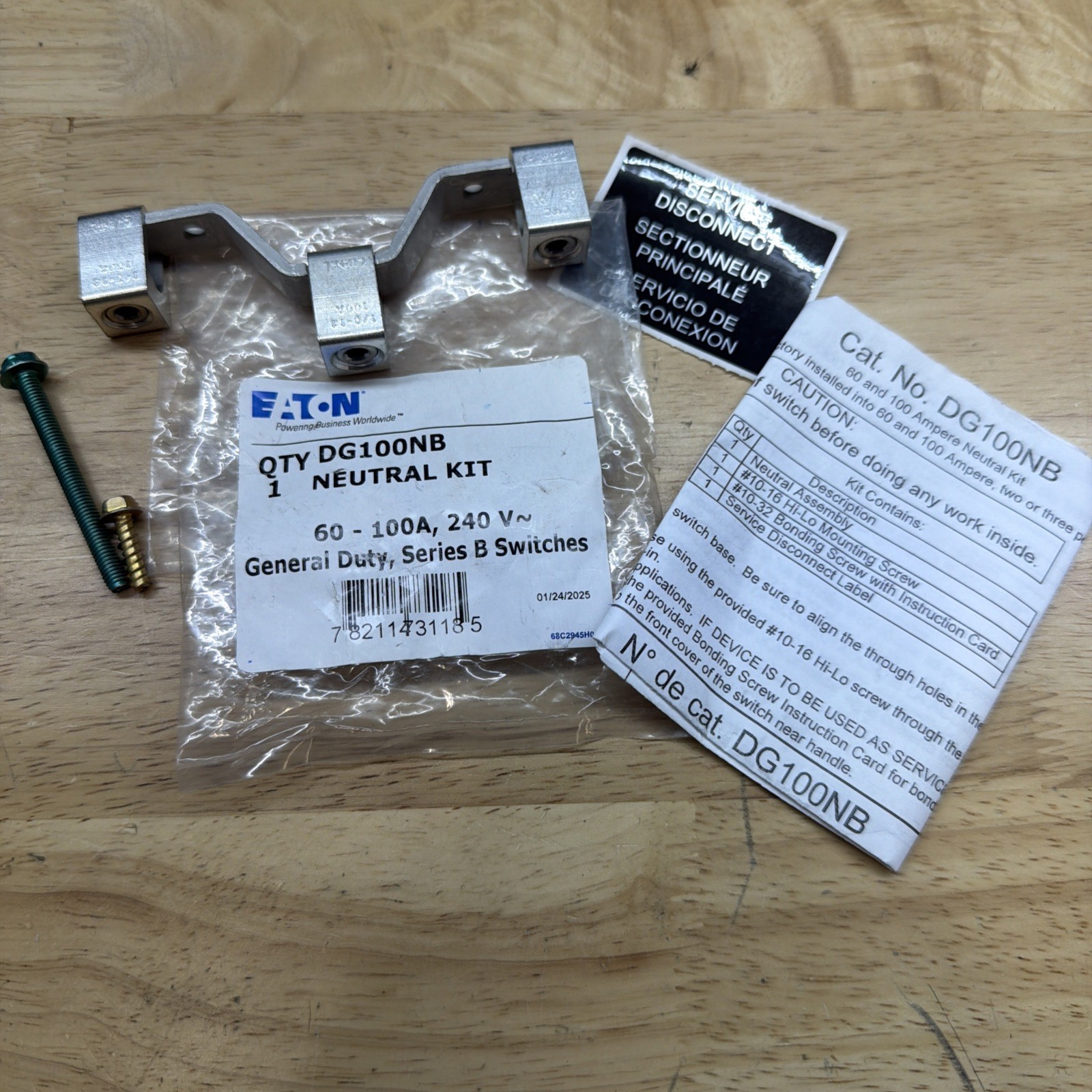 Eaton DG100NB 60-100A 240V Neutral Kit General Duty Series B Switches New