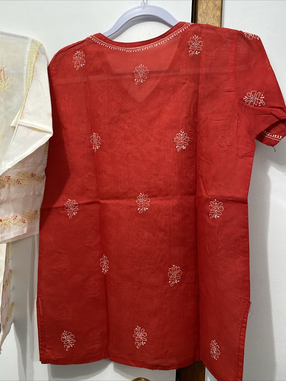 как выглядит Lot Of 2 Chikankari Kurti Kurta for Women Red White Embroidered Tops фото