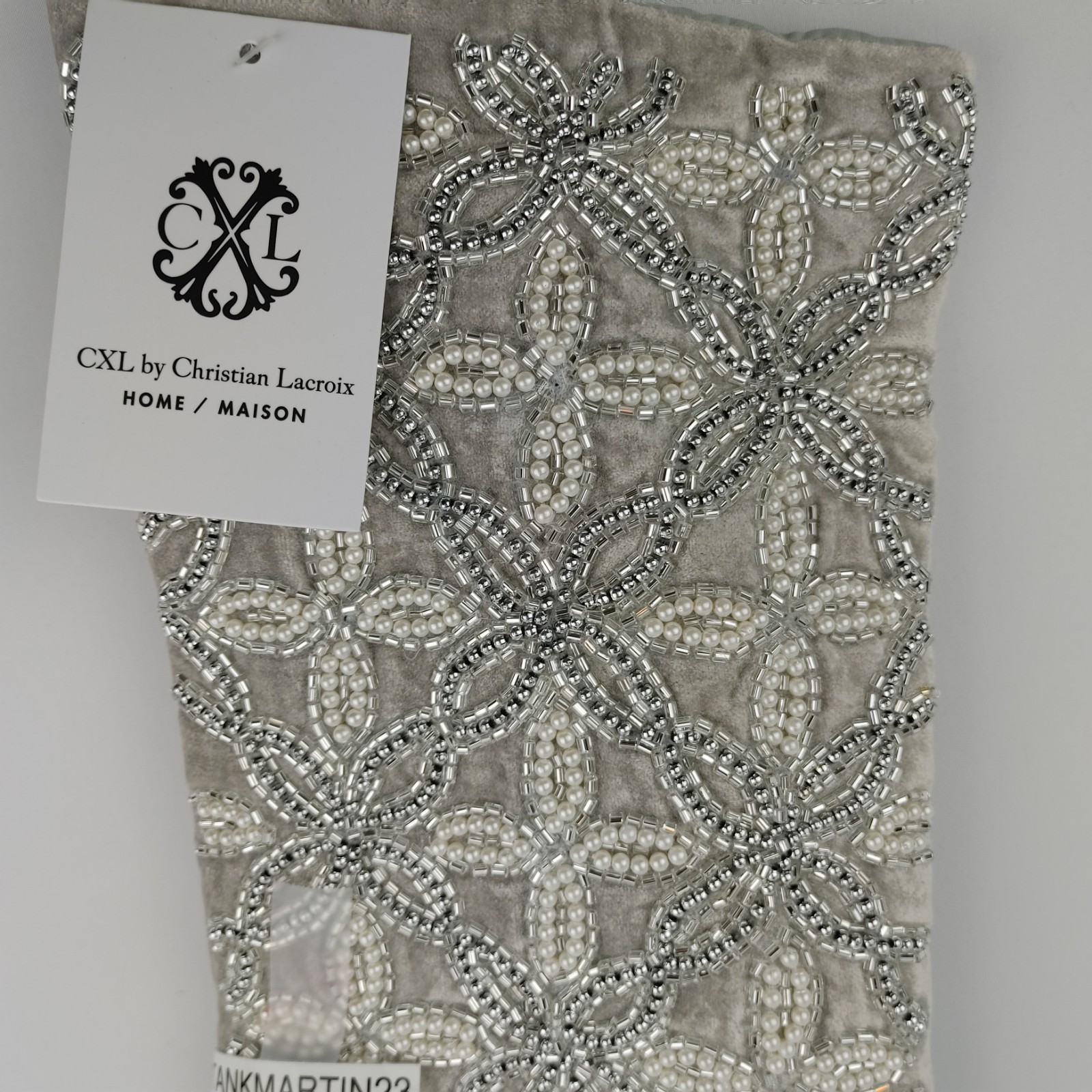 как выглядит Christian Lacroix Luxury Beaded 22" Christmas Stocking Silver Pearl Floral фото