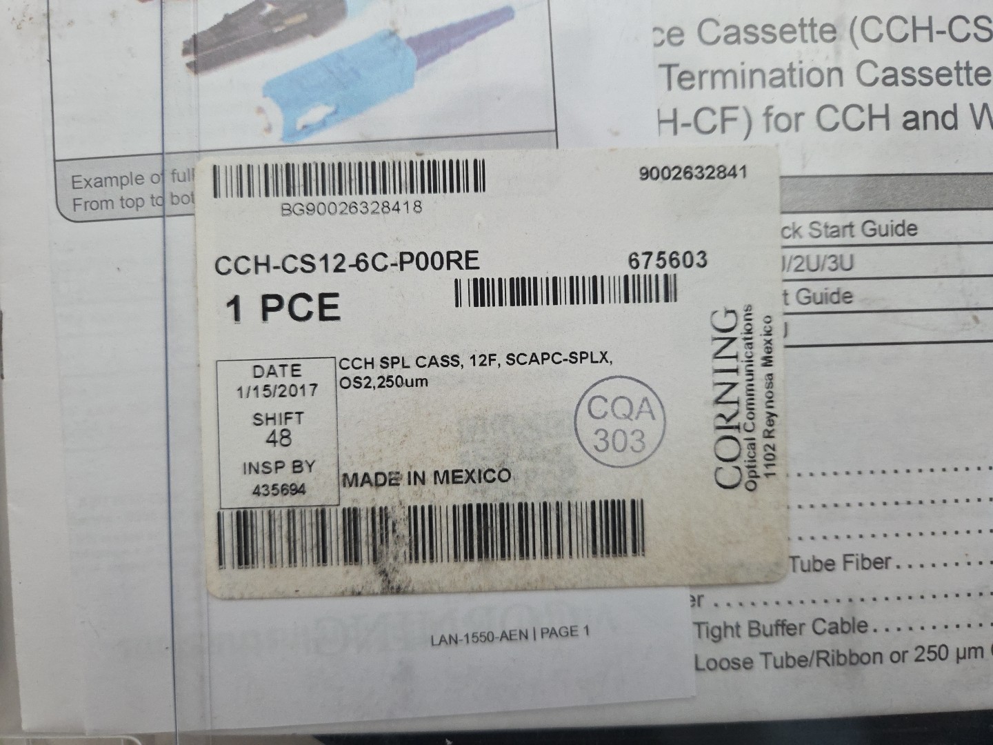 как выглядит Corning CCH-CS12-6C-P00RE Pigtail Splice Cassette фото