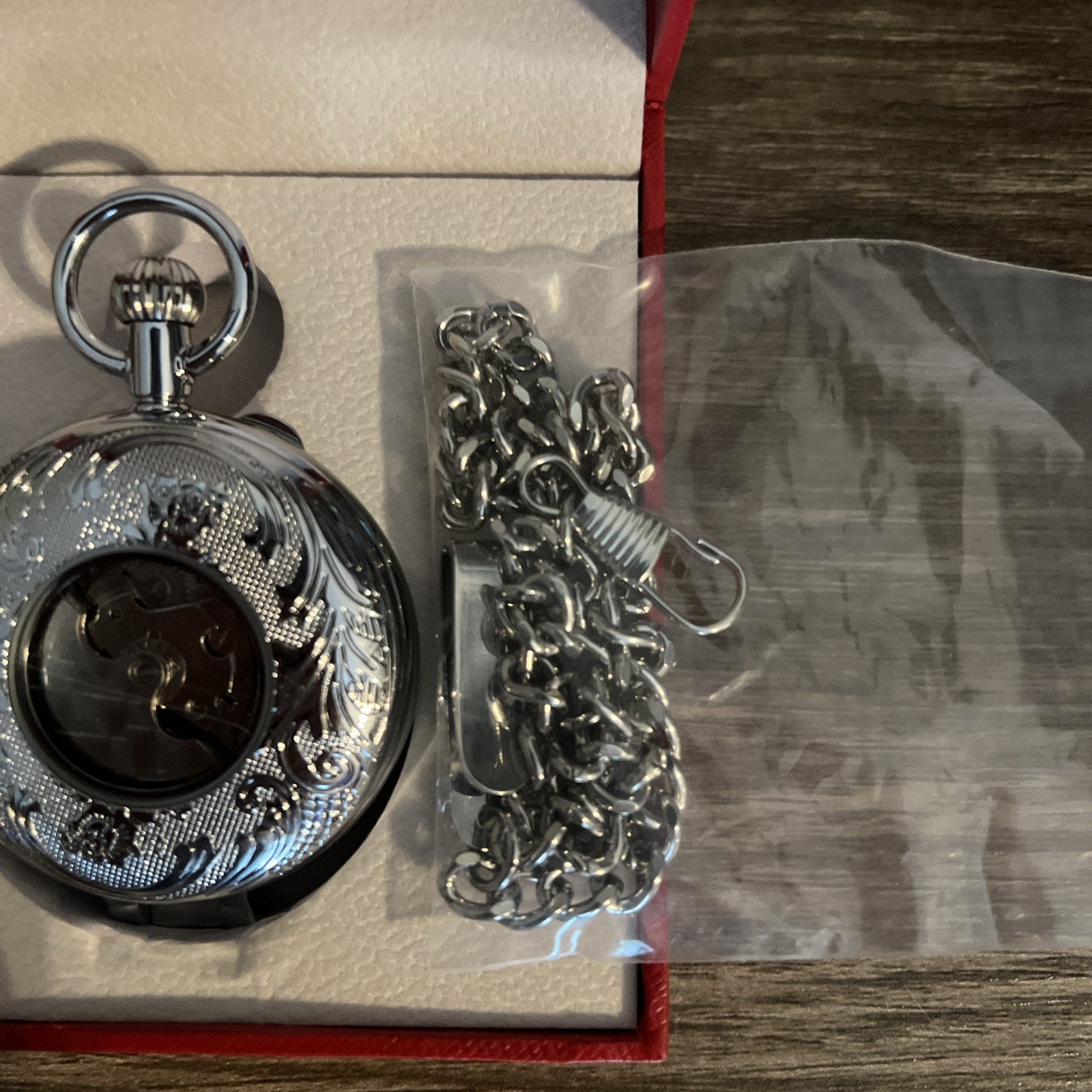 как выглядит OGLE Automatic Skeleton Pocket Watch Silver Magnifier Luminous Self Winding фото