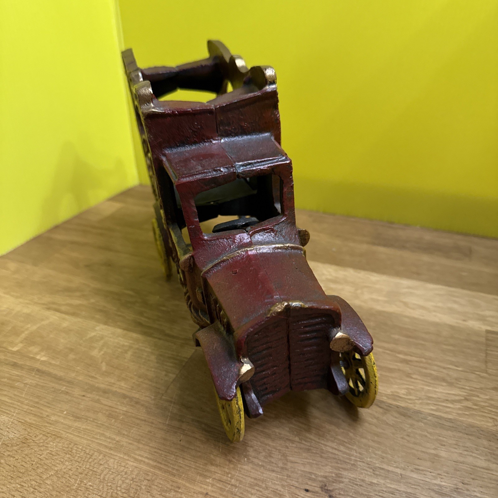 как выглядит Vintage Cast Iron Overland Circus Wagon Truck Red Gold Reproduction Toy фото