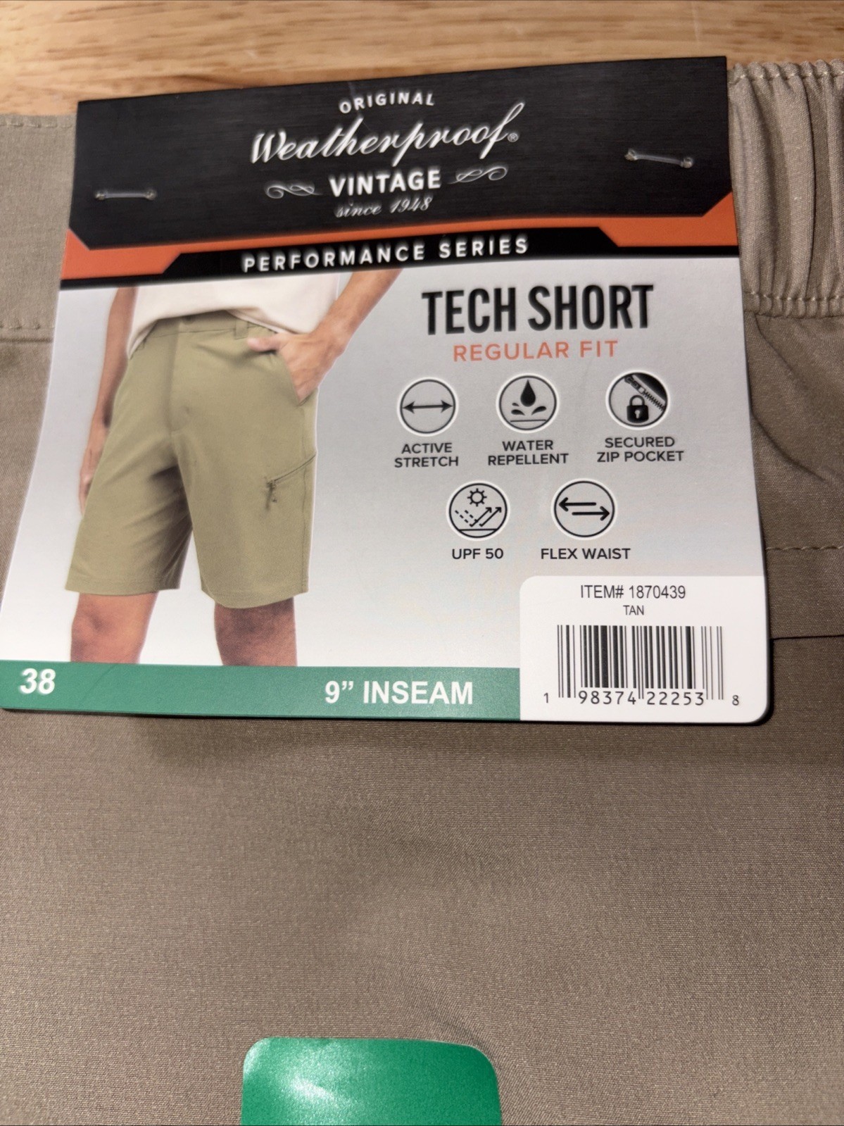 Weatherproof Vintage Men's Tech Short 9 Inseam Color: Tan Size: 38