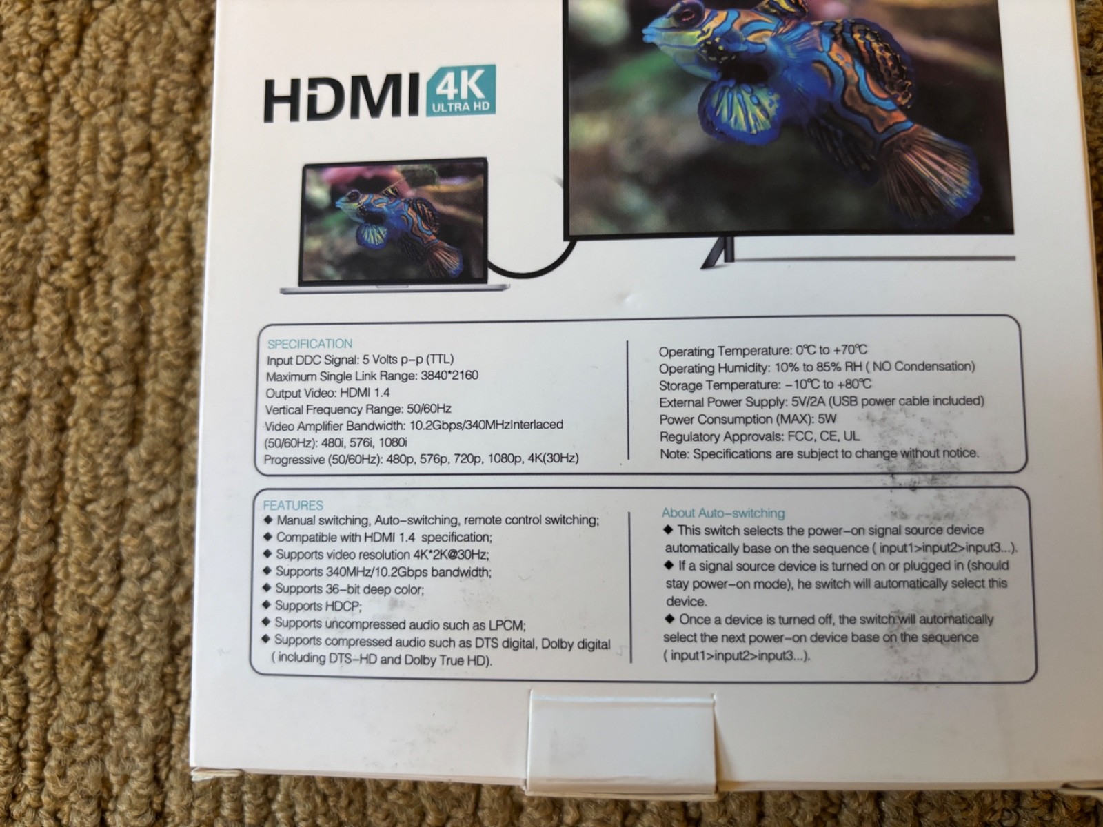 HDMI Switch, 3 in, 1 out, with IR Remote