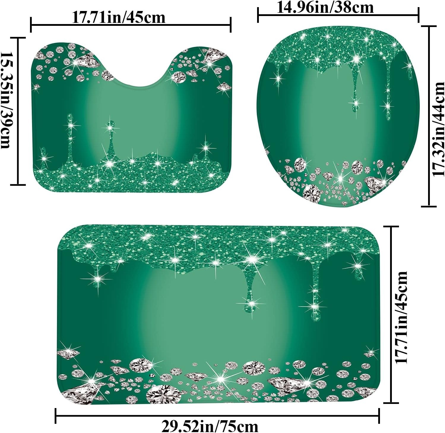 4-Piece Deep Green Glitter Diamond Shower Curtain Set with Rugs Toilet Cover