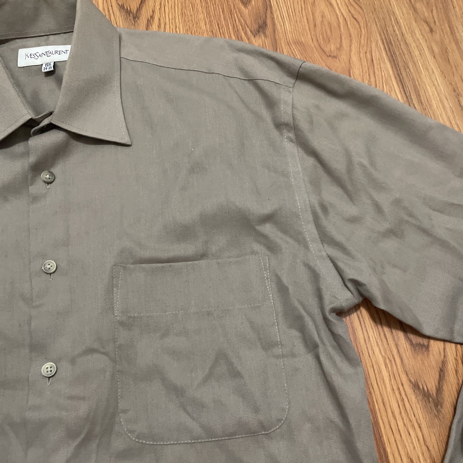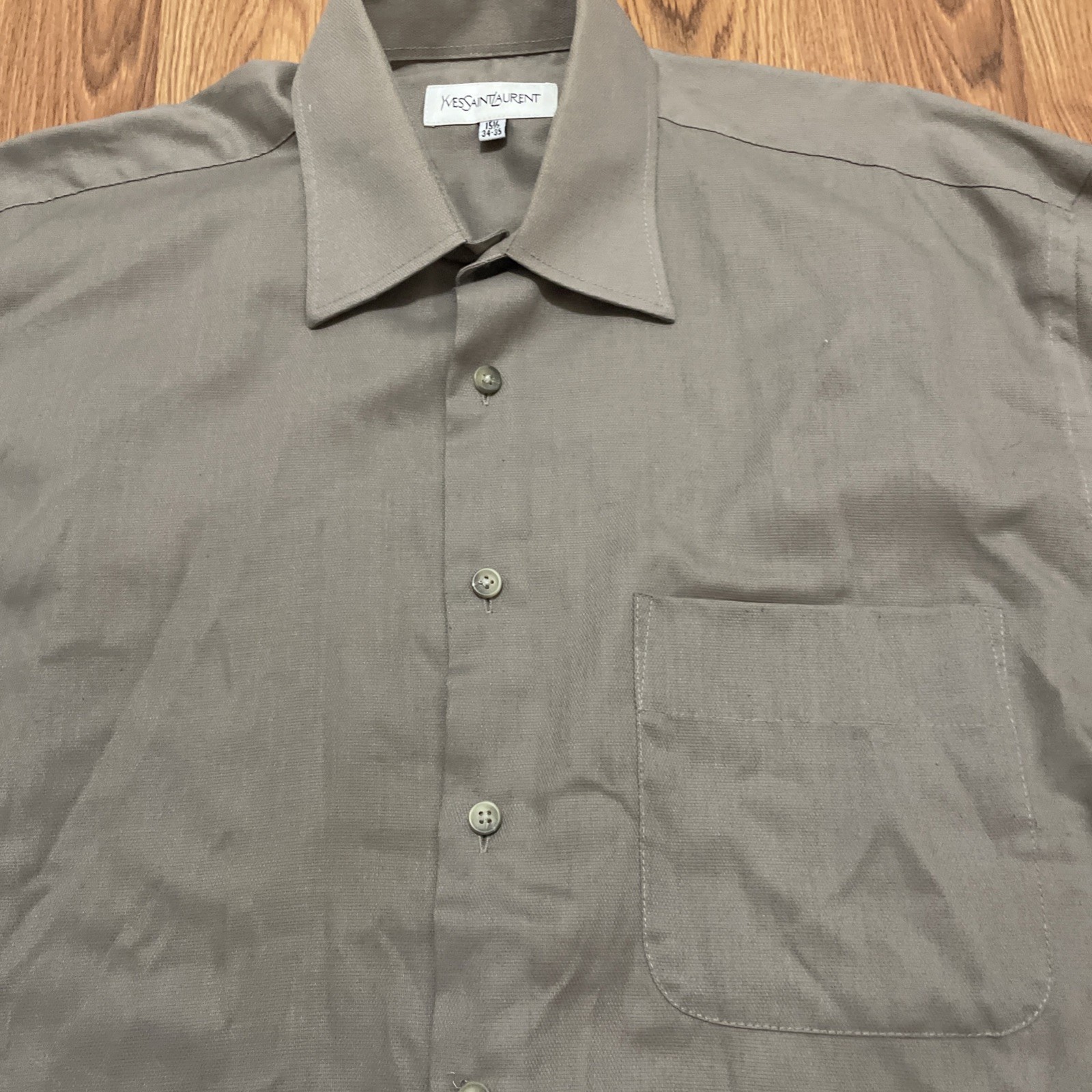 Yves Saint Laurent Mens Dress Shirt 15.5 34/35 Beige 90s Wrinkle Resistant