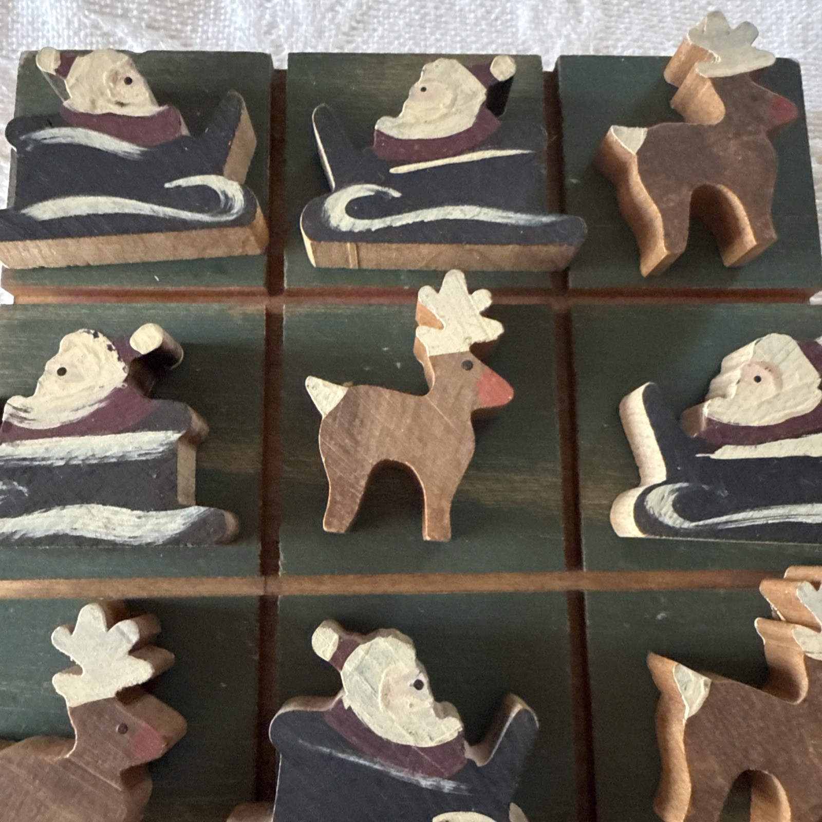 • Vintage Wooden Santa Reindeer Tic Tac Toe Game Wood Board Hand painted