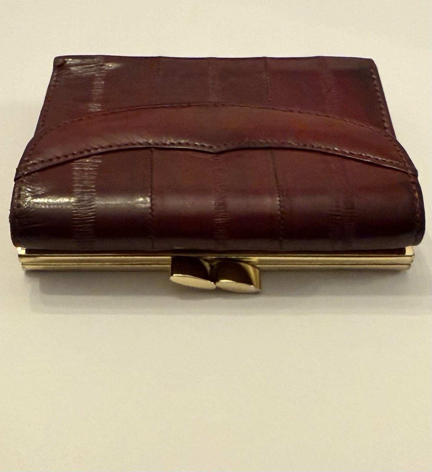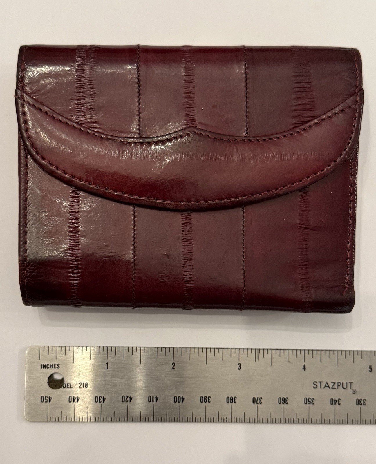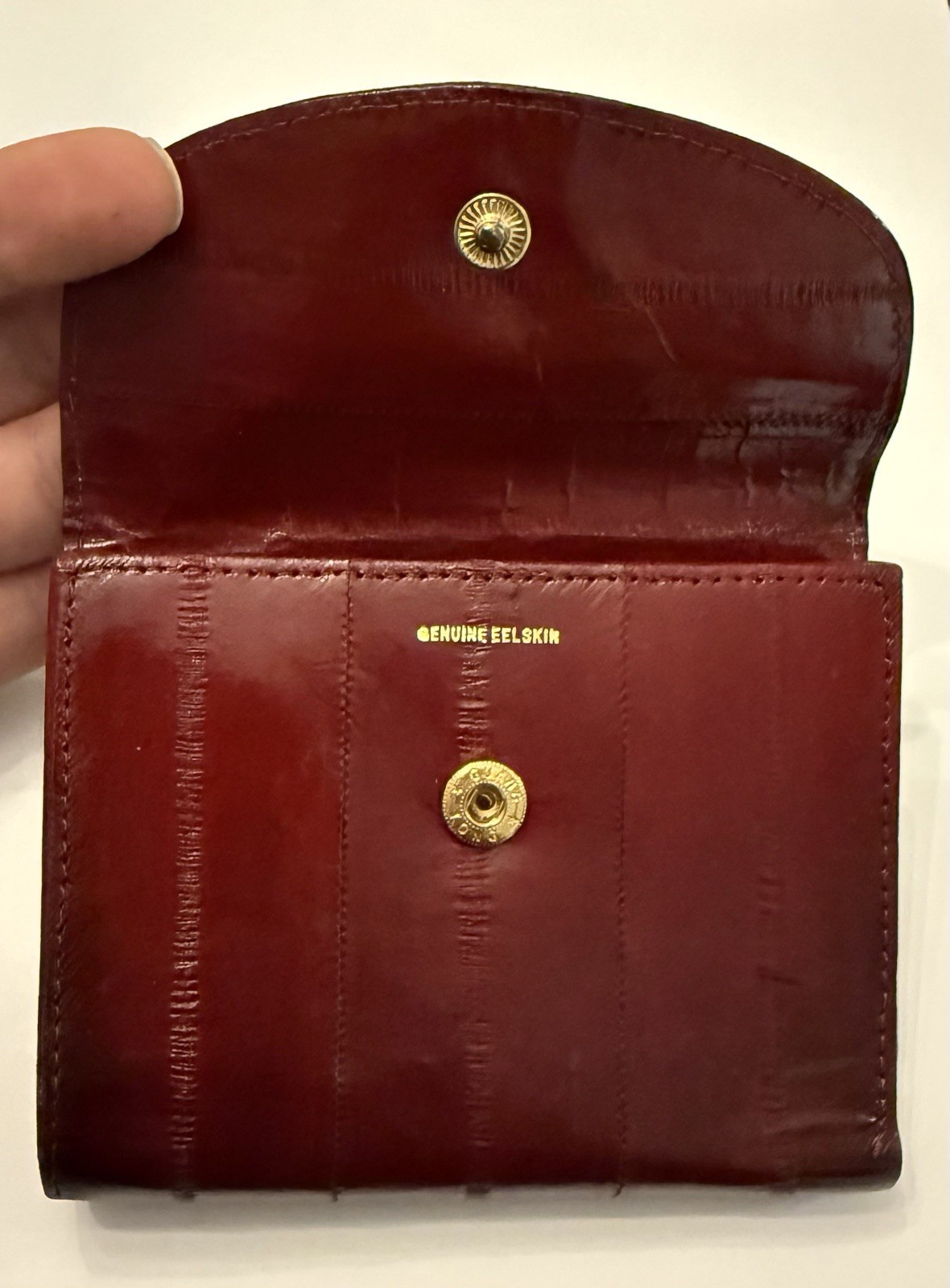 как выглядит Womens Vintage Genuine Eel Skin Wallet Burgundy Trifold Organizer Exotic Leather фото
