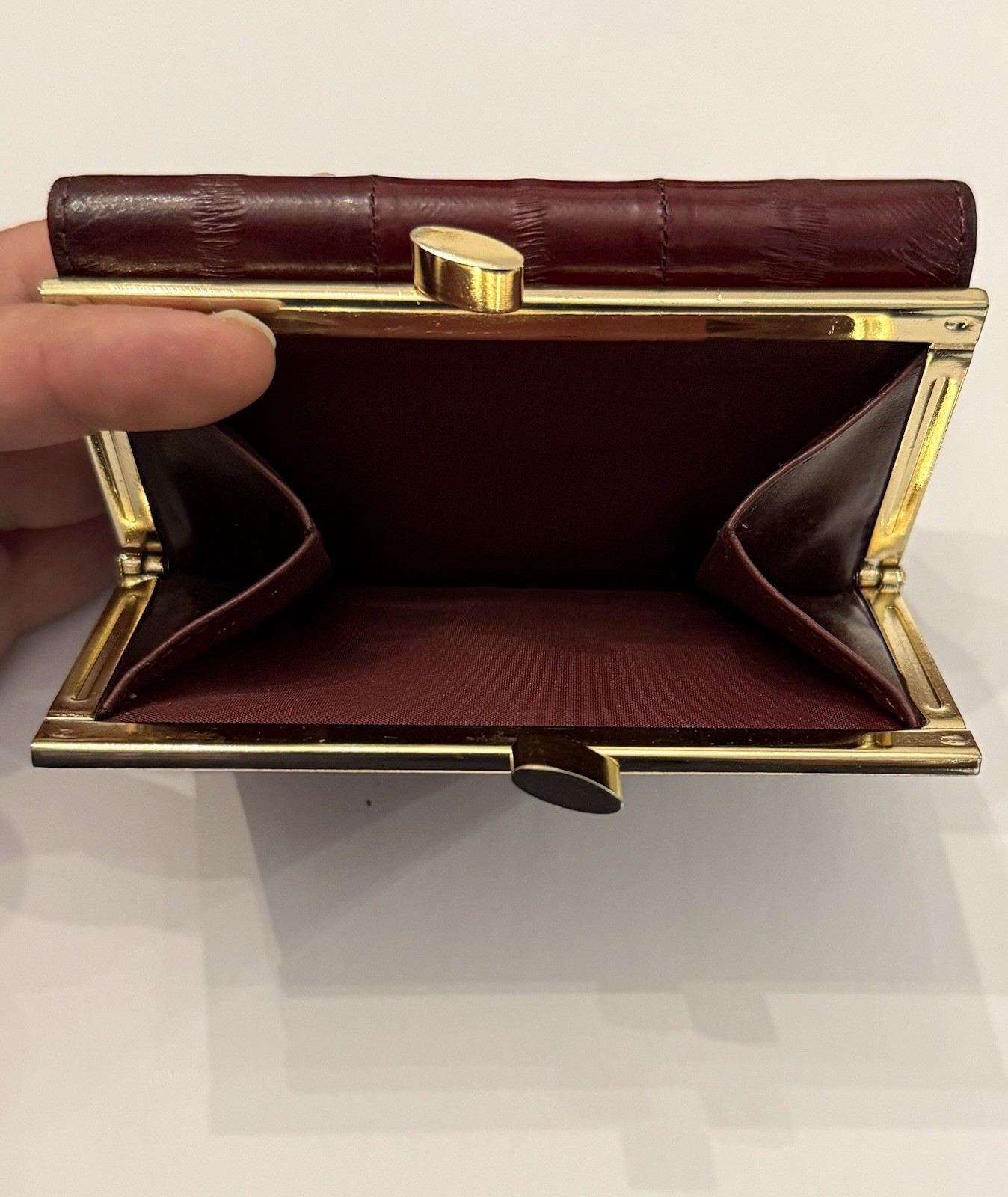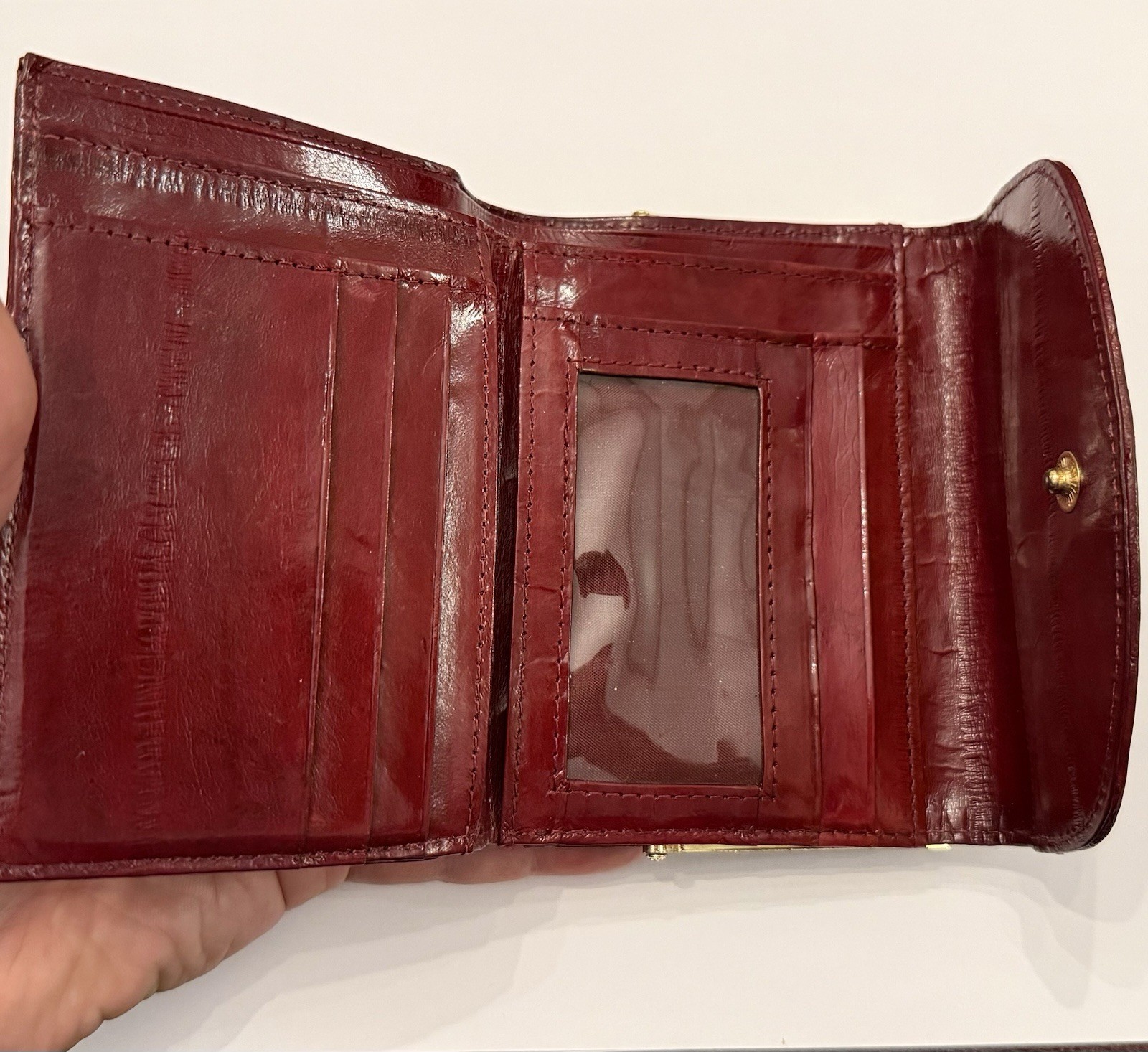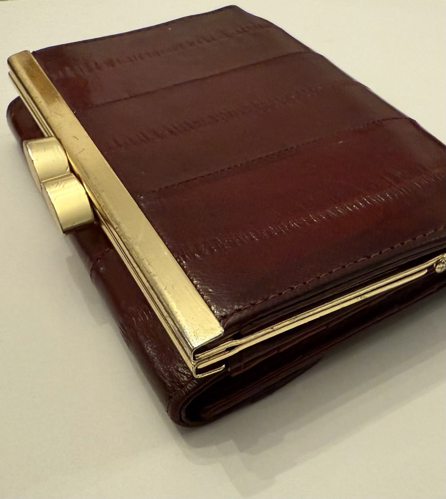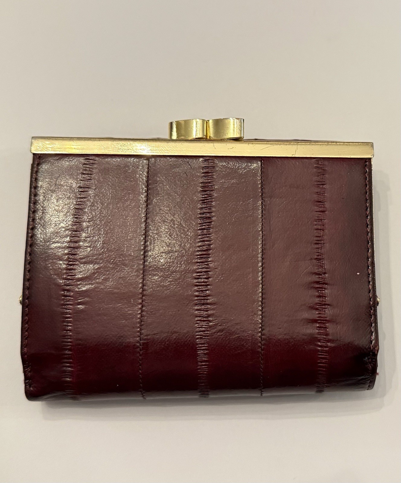 как выглядит Womens Vintage Genuine Eel Skin Wallet Burgundy Trifold Organizer Exotic Leather фото